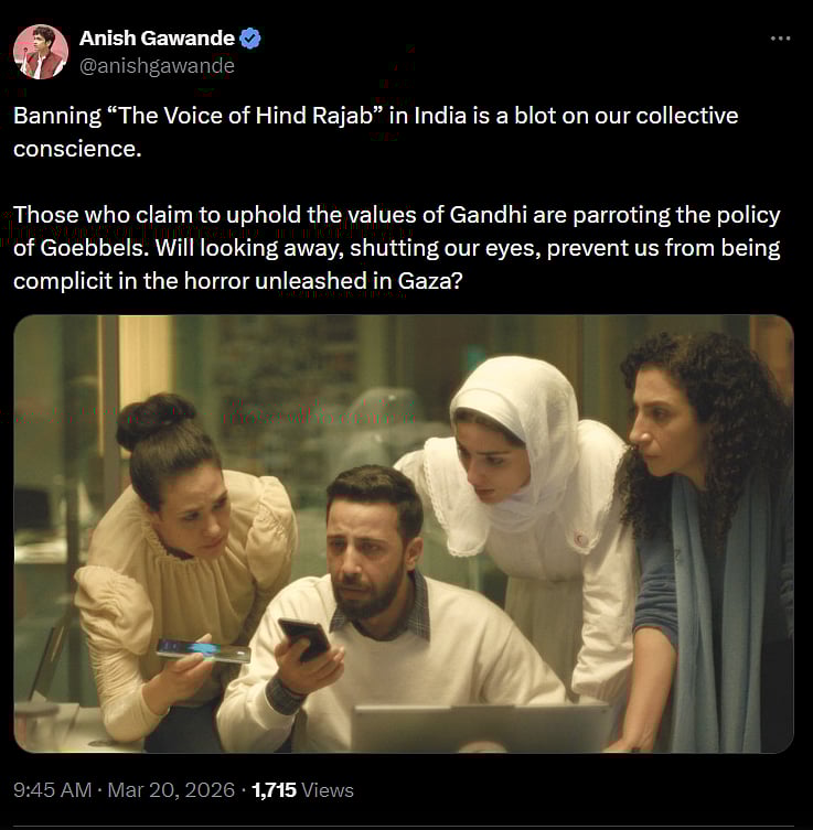 Rejecting the board’s concerns, Nandwana argued that bilateral ties are robust enough to withstand a film release. He pointed out that The Voice of Hind Rajab has already been screened in countries such as the United States, the United Kingdom, Italy, and France – many of which maintain close relations with Israel.