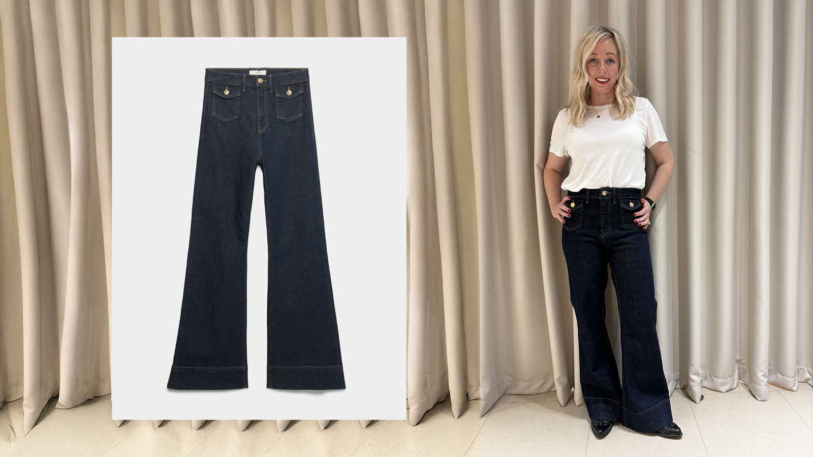 While the best wide-leg jeans have been at the forefront of denim trends for the last few seasons, Seventies-inspired flared cuts are a timeless style that works for all body shapes. With a gently flared leg, extra-wide hem detail and cool patch pockets at the hip, this contemporary take on a wardrobe favourite can be worn with flats, trainers or heels for a laidback date night outfit.