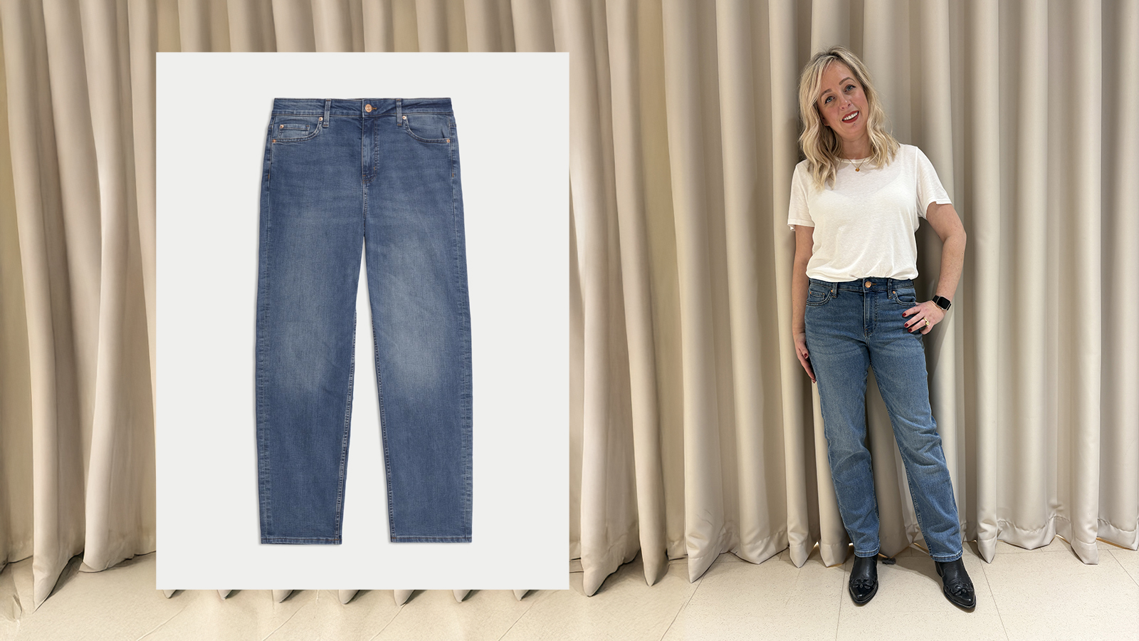 "Since they made their fashionable debut, I've been a convert to barrel leg jeans, and I had to stop myself from coming home with this pair. Unlike many pairs that feature darting at the knees, this pair feature a clever panelled cut. They sit flat across the front of the thigh, adjoining an additional panel that creates the curve. This, combined with the seam between them, creates a line for the eye to travel down, elongating your leg.