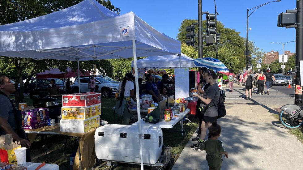 A few blocks from Mt. Bethlehem, vendor Raheema Lewis brought a tent, tables, barbecue and other supplies in a U-Haul truck to the park near the northwest corner of Sacramento and Ogden Avenues and was selling hotdogs and cheeseburgers. A former restaurant worker, Lewis offered that on a good festival day she could pull in as much as $2,000 — money she’s saving to open her own restaurant.
