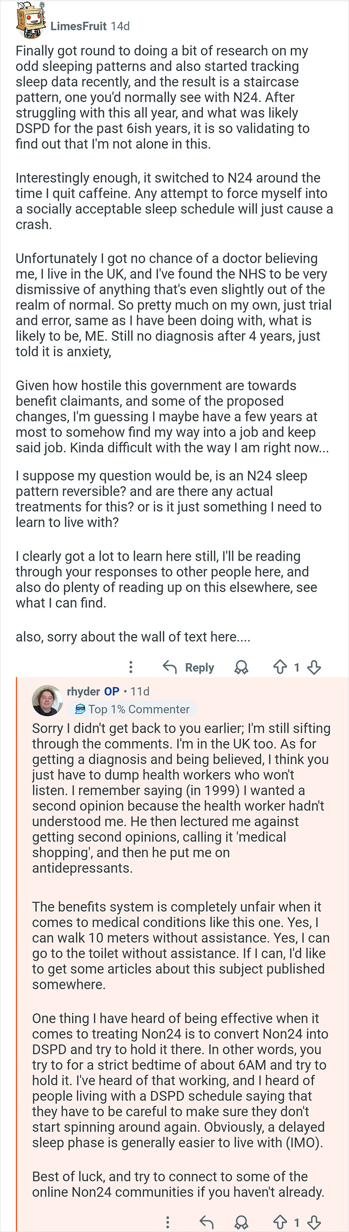 "In 2019, I decided to seek medical assistance once again and the GP I met this time around was much more helpful and understanding. Eventually, I was referred to a sleep clinic in a different part of the country, and one of the specialists I met recognised my condition," he writes. "It was then, after 27 years that I was finally given my official diagnosis of Non 24 Hour Sleep-Wake Disorder."