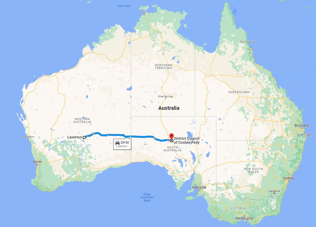 The isolated unsealed track runs over 1,300 kilometres from Coober Pedy in South Australia to the Western Australian town of Laverton.