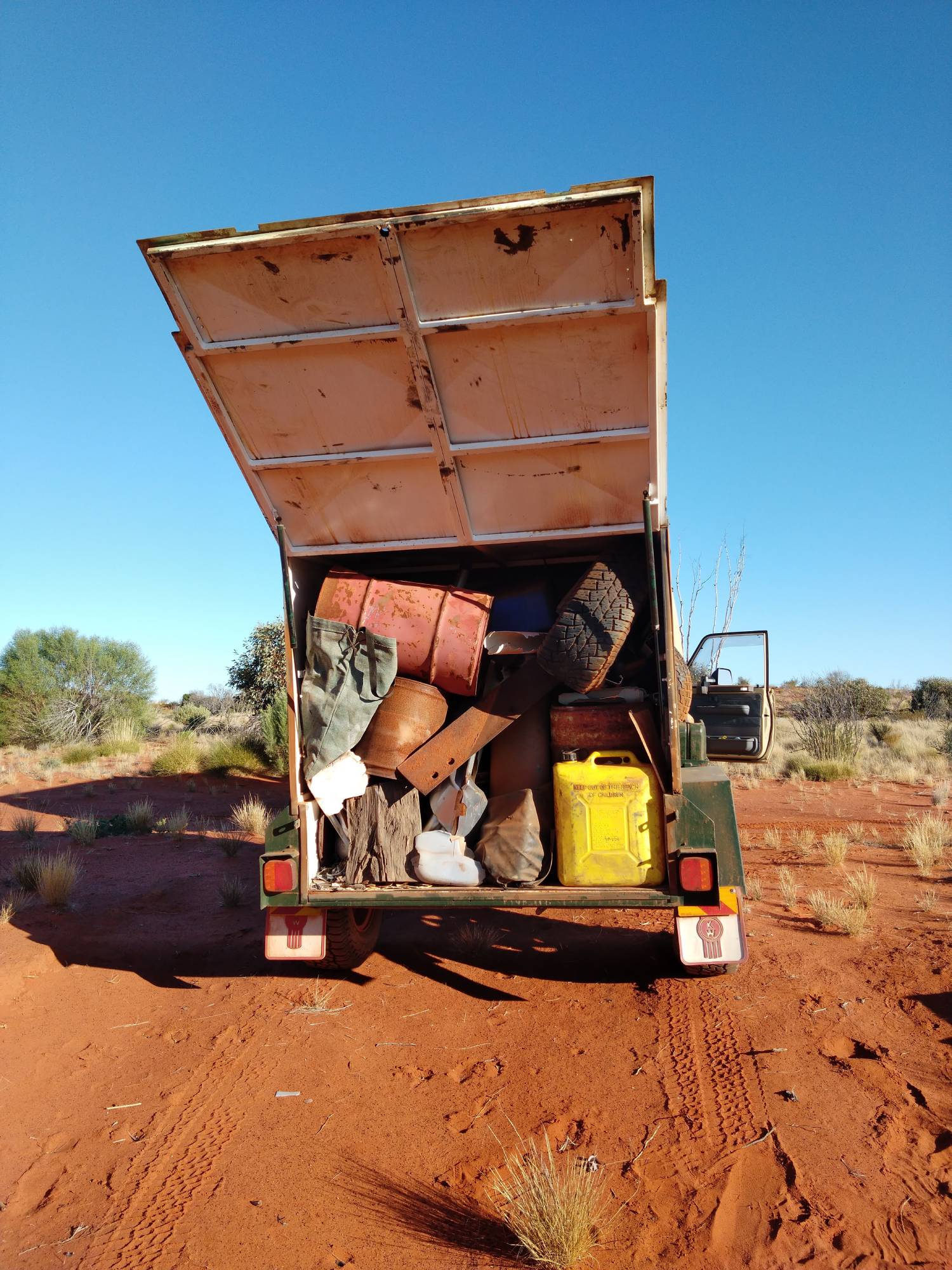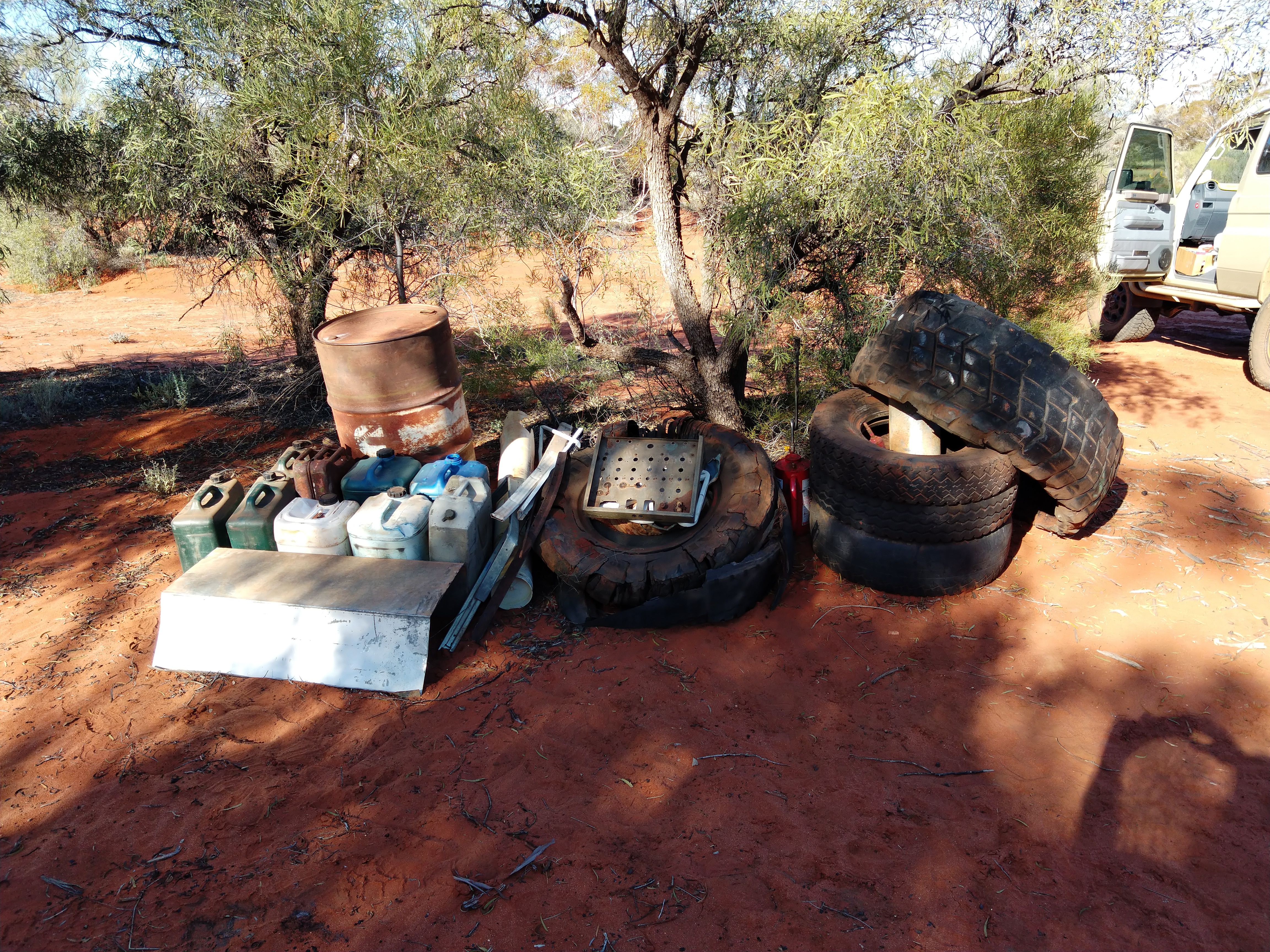 "There were empty stubbies, a couple of empty lolly wrappers, two bull bars and quite a few tyres, old oil drums, empty jerry cans where people had bought fuel, tipped it in and just placed it on the side of the track," he said.