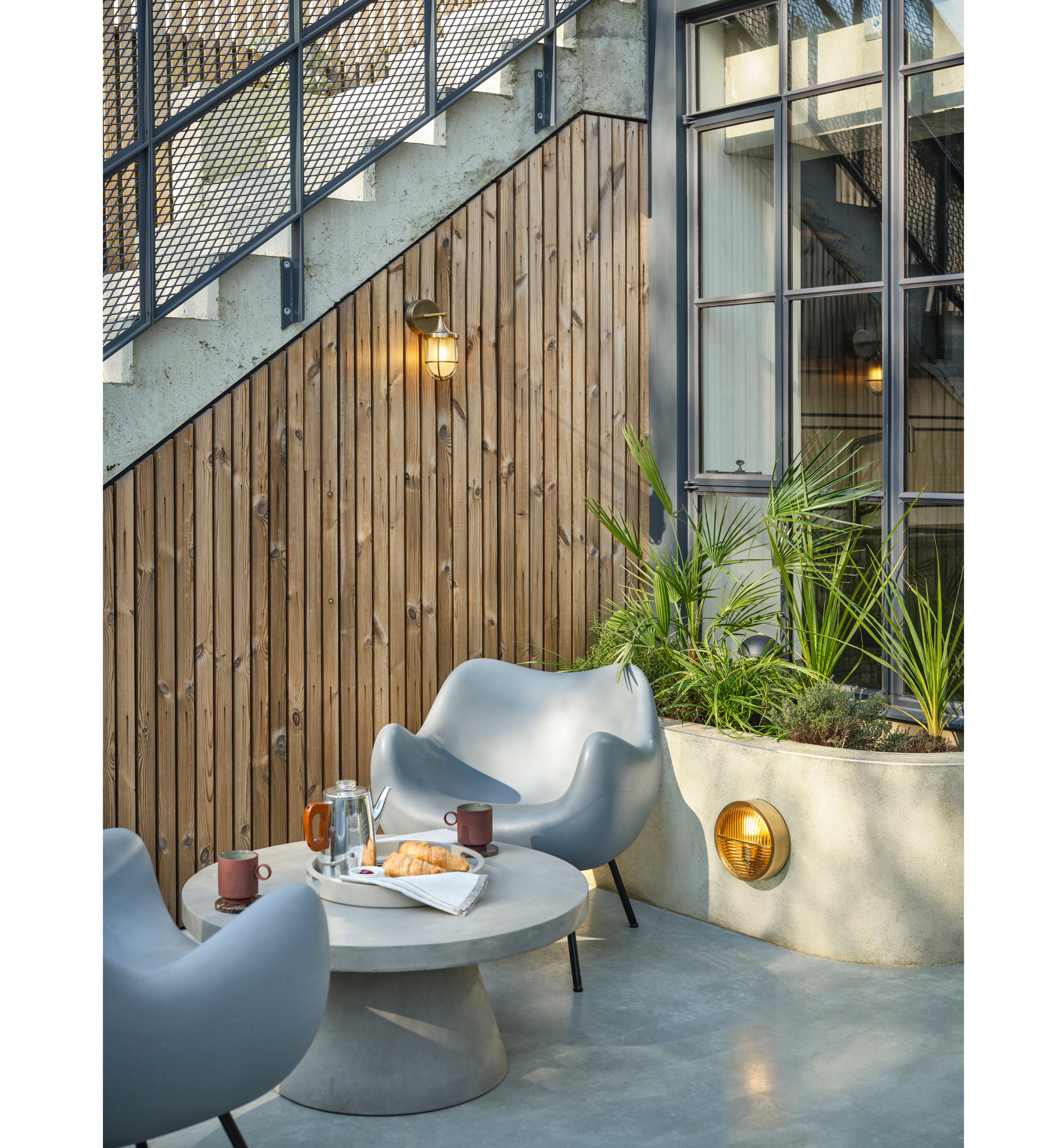“Pair low-set bulkheads with an overhead wall light to bathe seating areas in warmth, and create the perfect atmosphere for long, relaxed summer evenings.”