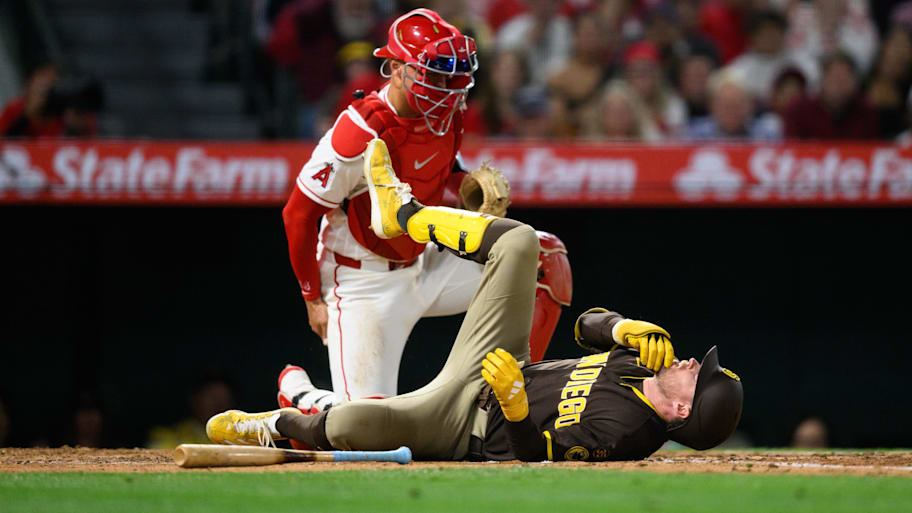 Padres' Jake Cronenworth was hit in the face by a pitch from Angels' Yusei Kikuchi on Saturday night. Cronenworth was facing a 1-2 count with two outs in the top of the fifth when Kikuchi threw a pitch up and in that struck the second baseman in the jaw. Cronenworth immediately went down to the ground and motioned for help from trainers.