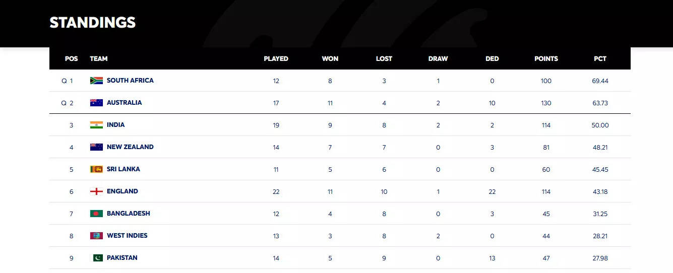 South Africa will finish atop the WTC 2023-25 standings with a PCT% of 69.44, while Australia, who will face Sri Lanka in a two-match Test series starting January 29, will secure second place.