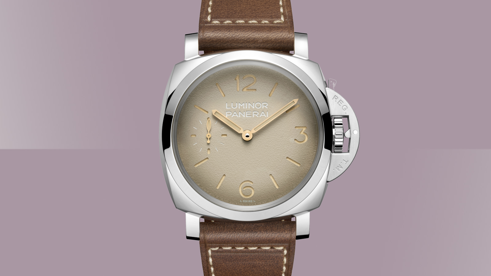 There's also a new addition to the standard Luminor collection. That features a tobacco dial inside of a 44mm polished steel case, complete with the usual sandwich construction and beige Super-LumiNova beneath.