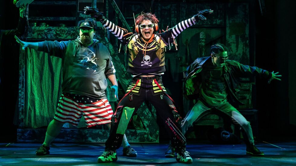 The characters of Charlie and Augustus Gloop (David Blakeman) largely stick to Dahl’s interpretation, while Mike Teavee (August Forman), Veruca Salt (Devon Hayakawa), and Violet Beauregarde (Tiffany Taylor) have been tweaked a bit. Mike, whose name seems to reflect a bygone era, is now a tablet-carrying cyberpunk who got his golden ticket by hacking Wonka’s computer system. Violet is a gum-chewing singer whom her opportunistic father (played by Lorenzo Rush Jr.) bills as “the queen of pop” for both talents. And the spoiled Veruca is now Russian.
