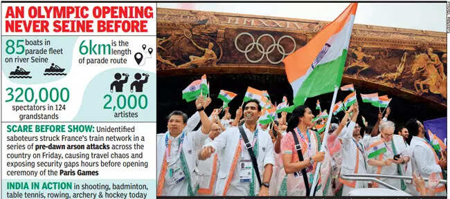 PARIS: The incessant wailing of police sirens could be heard at the stroke of 12 on Friday afternoon outside the Palais des Congres. The city was on high alert. Heavily armed police personnel had started cordoning off the area close to the River Seine. This beautiful world city, which moves at a fast pace, had slowed down by the evening to welcome the Olympic Games home in an open ceremony.