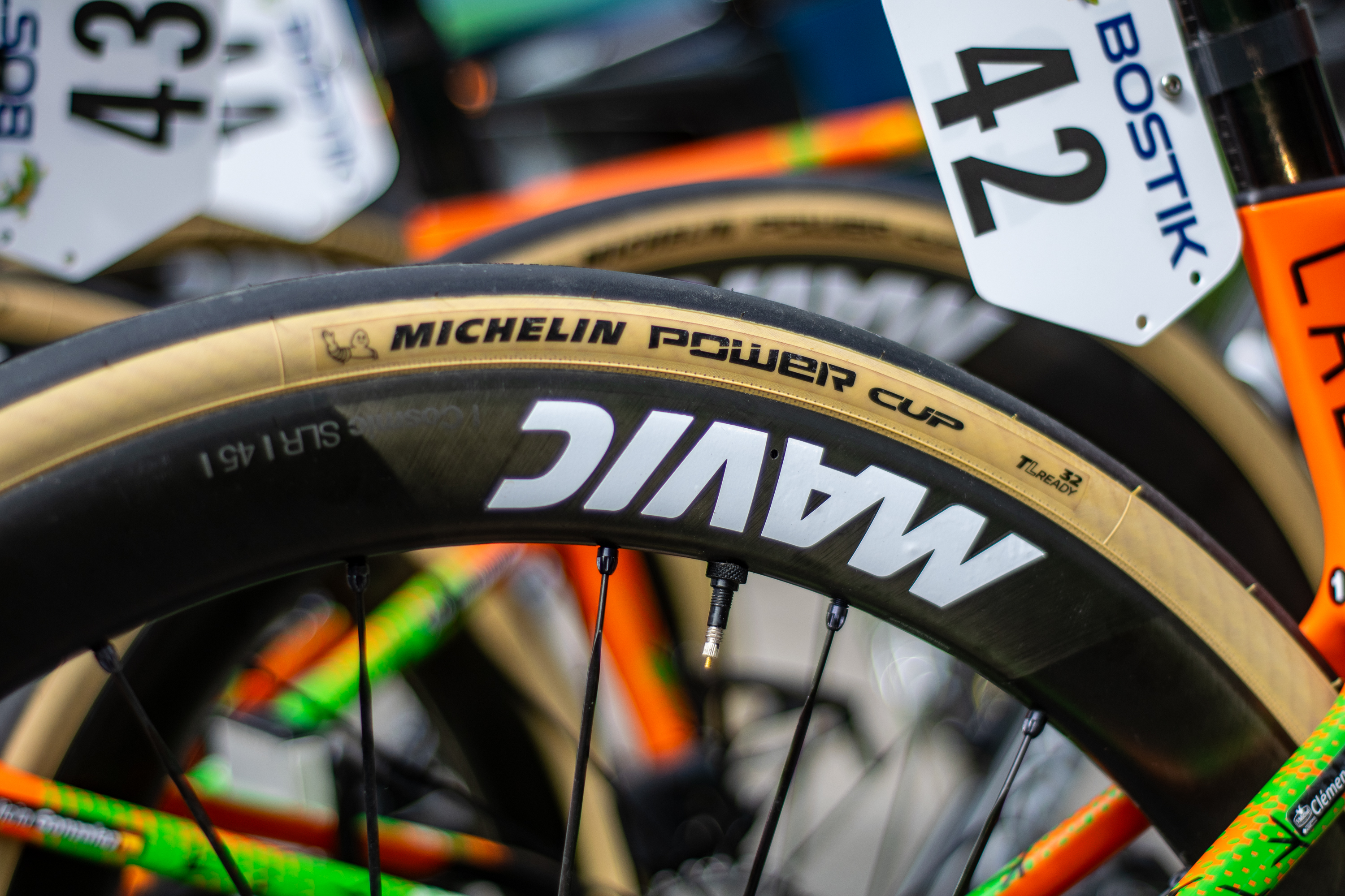 Jackson's St Michel - Preference Home team uses an all-French Mavic and Michelin wheel and tyre combination. The wheels were fitted with Mavic Power Cup 32mm tyres.