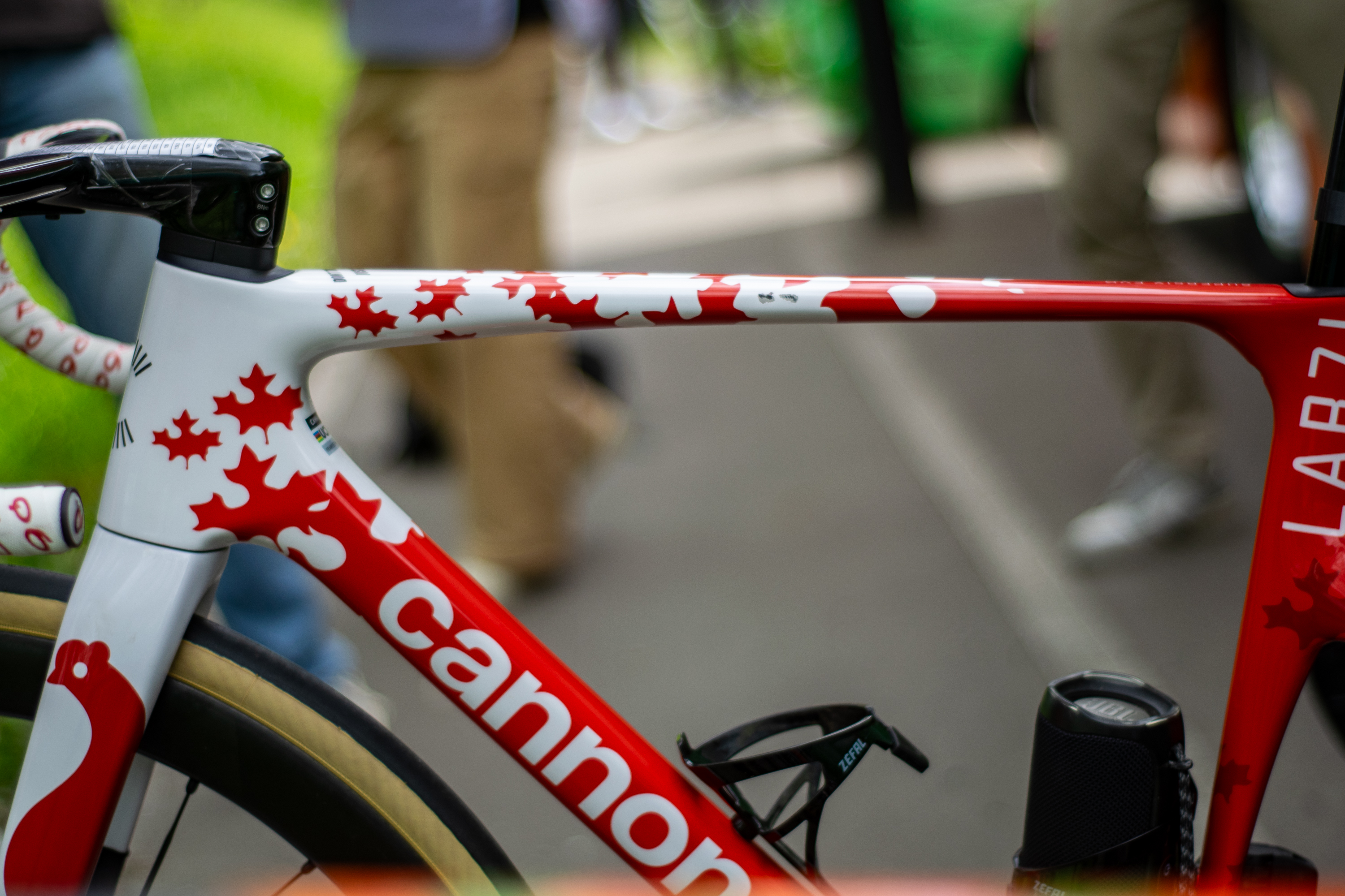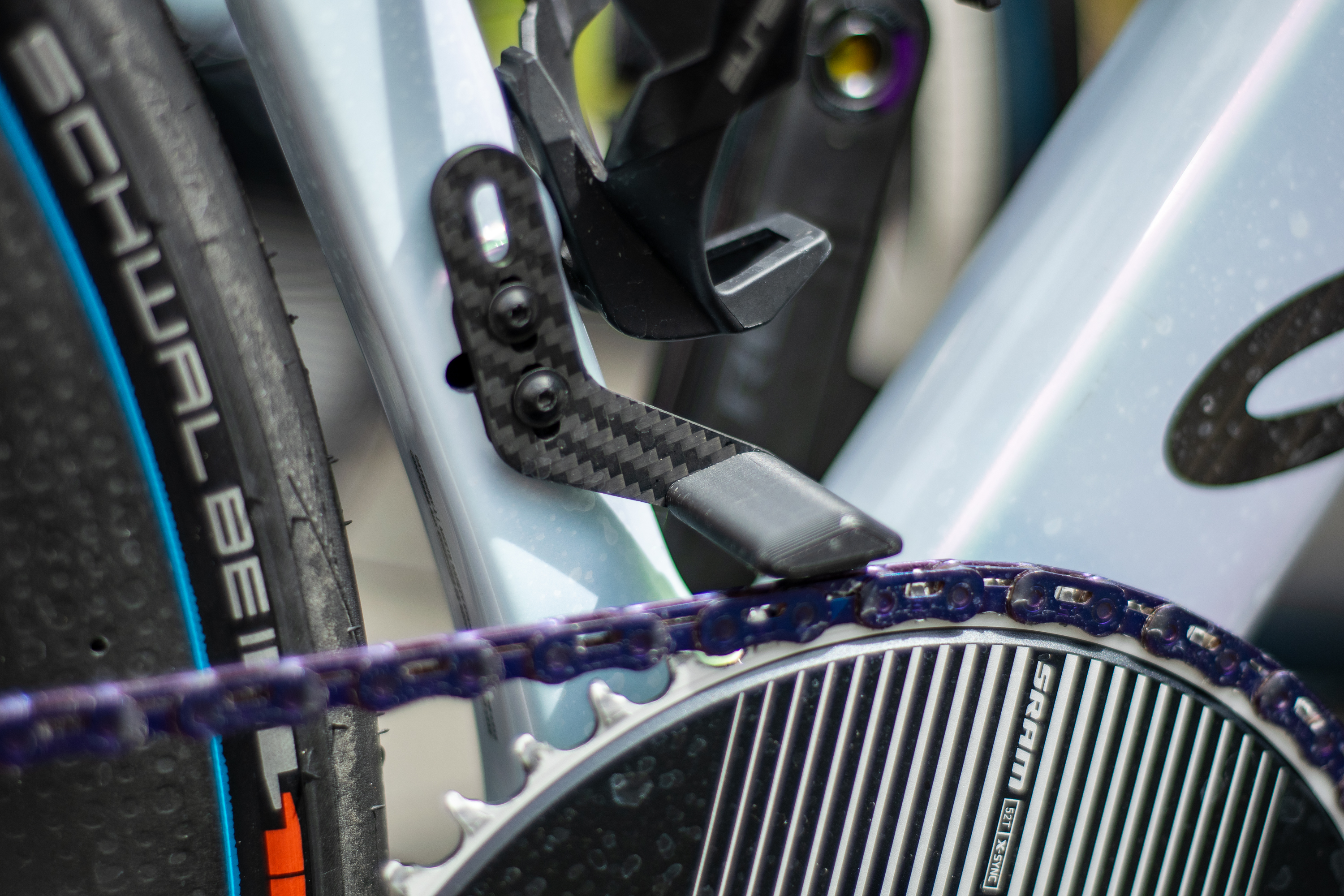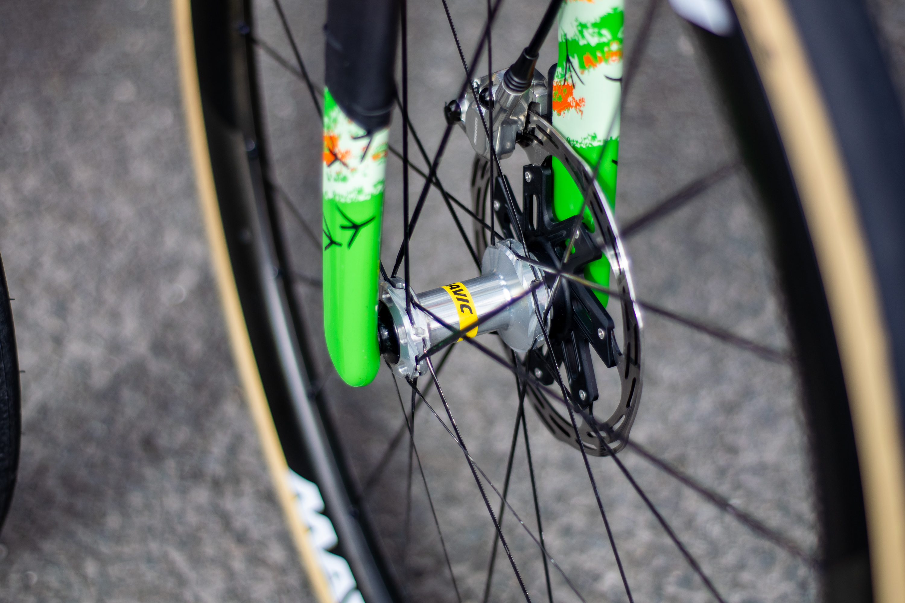 The team had also switched to Vittoria Corsa Pro tyres from their usual Michelin models. All the logos were sharpied out. They wouldn't give me a hard answer on why, but it's likely because Michelin's tyres go only to 30mm.