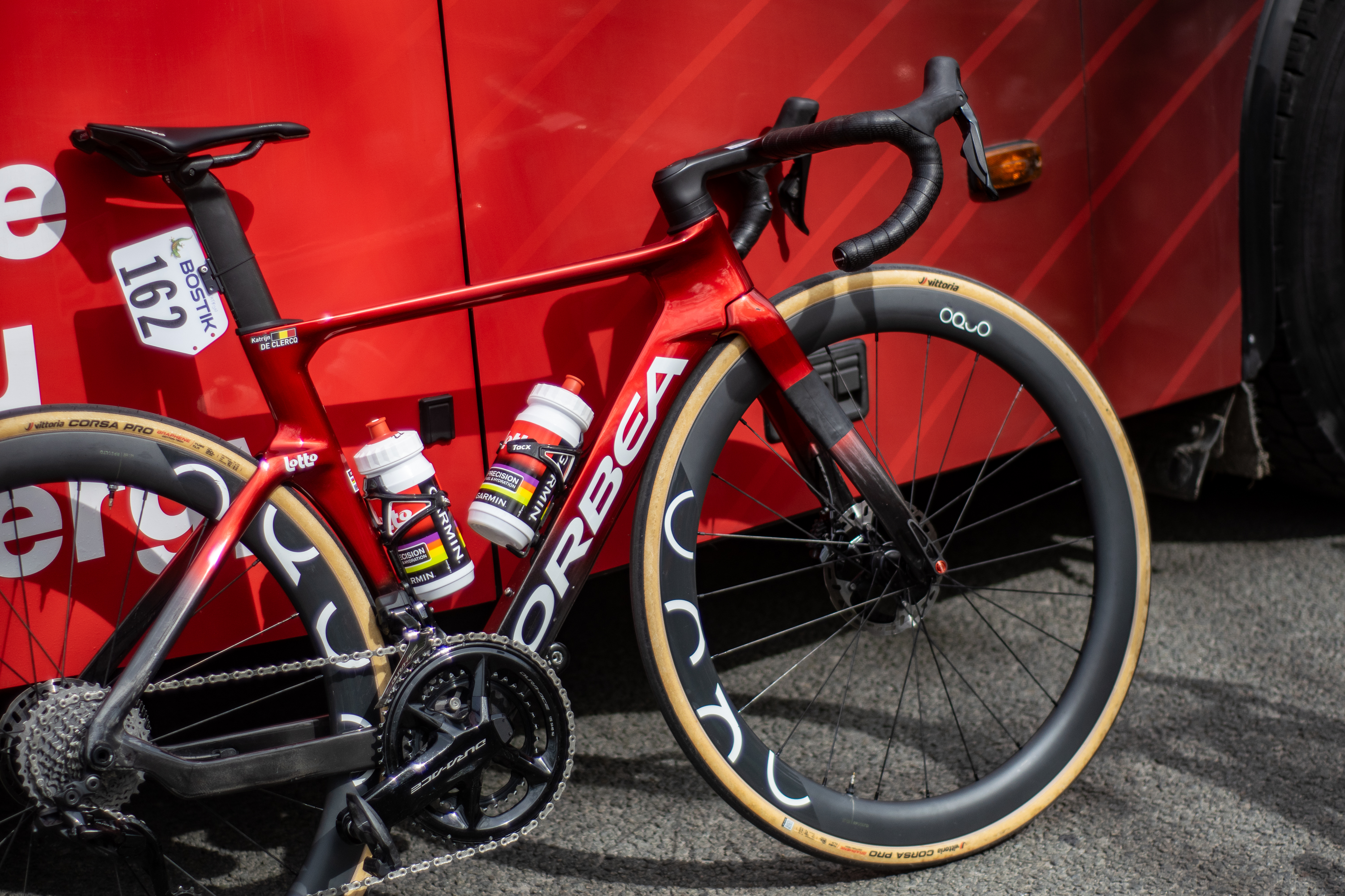 The Lotto Orbea Orca bikes looked pretty stock; the team had some of the narrowest tyres around.