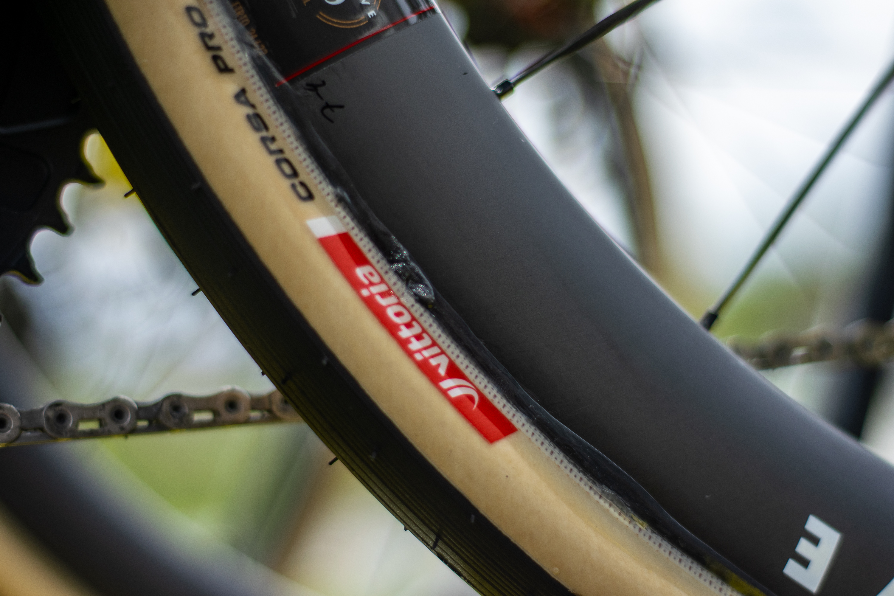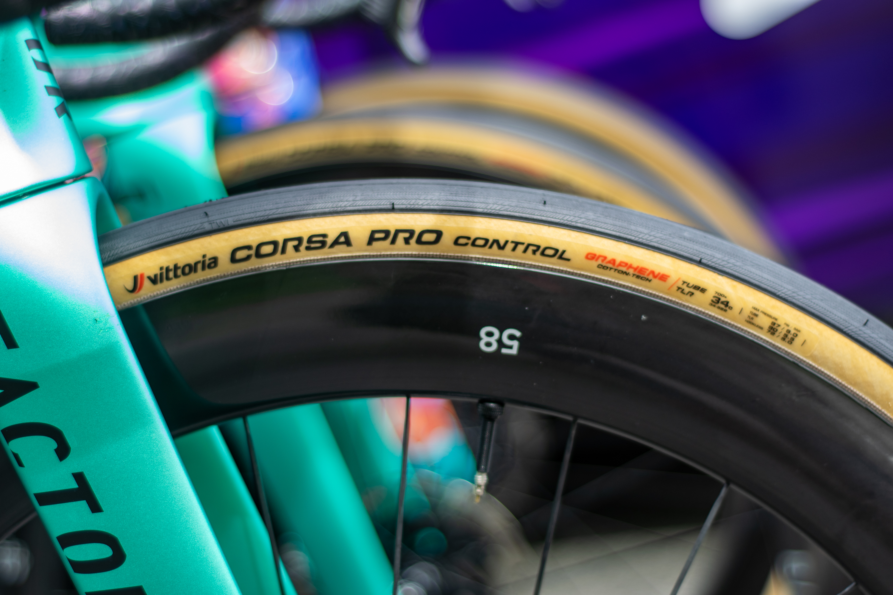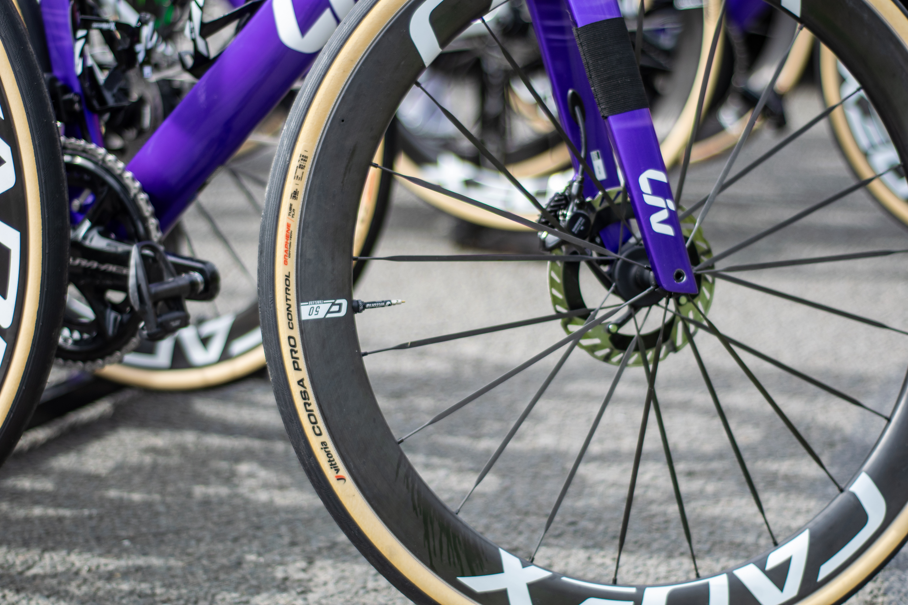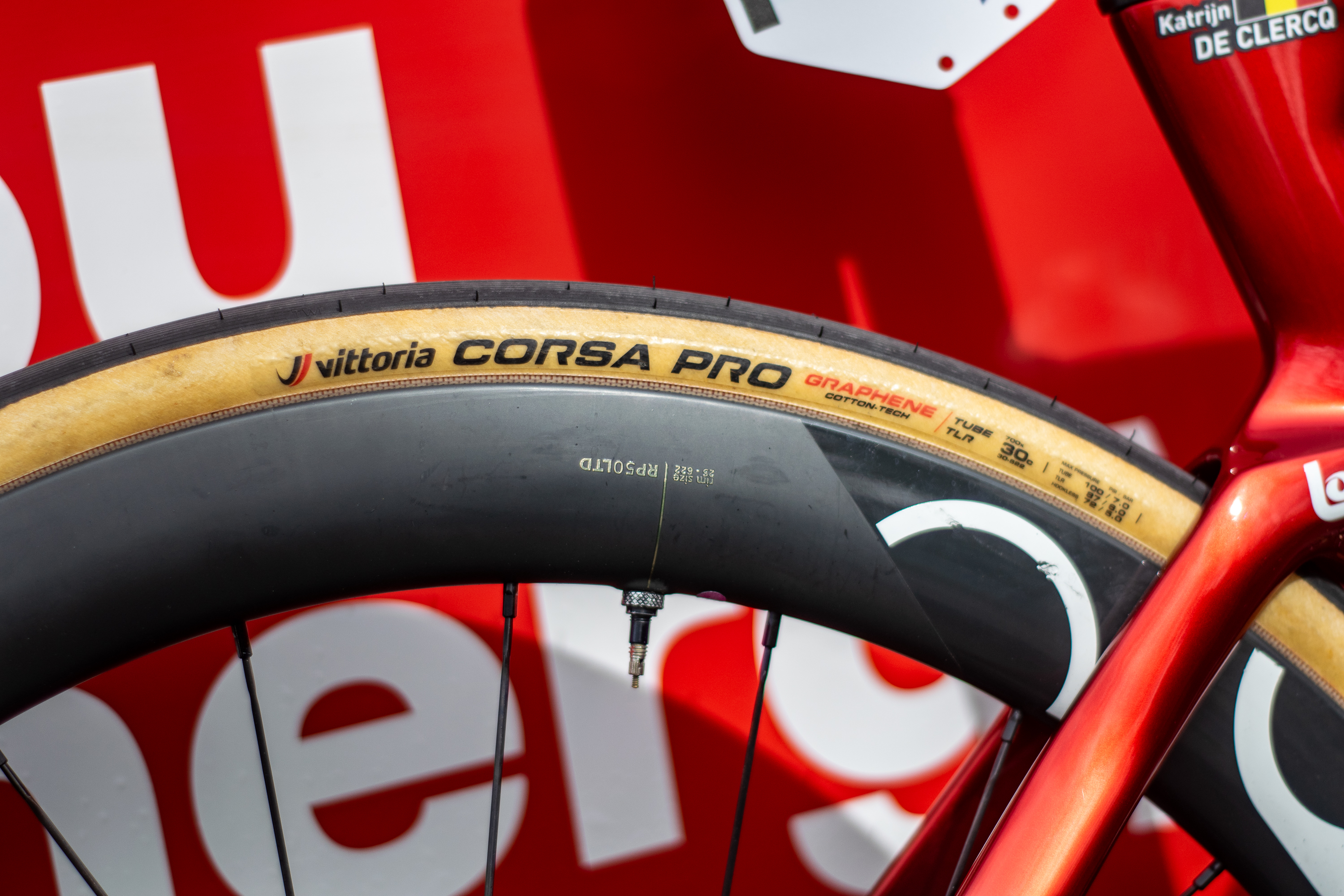 The team had fitted 30mm Vittoria Corsa Pros, a seemingly conservative choice.