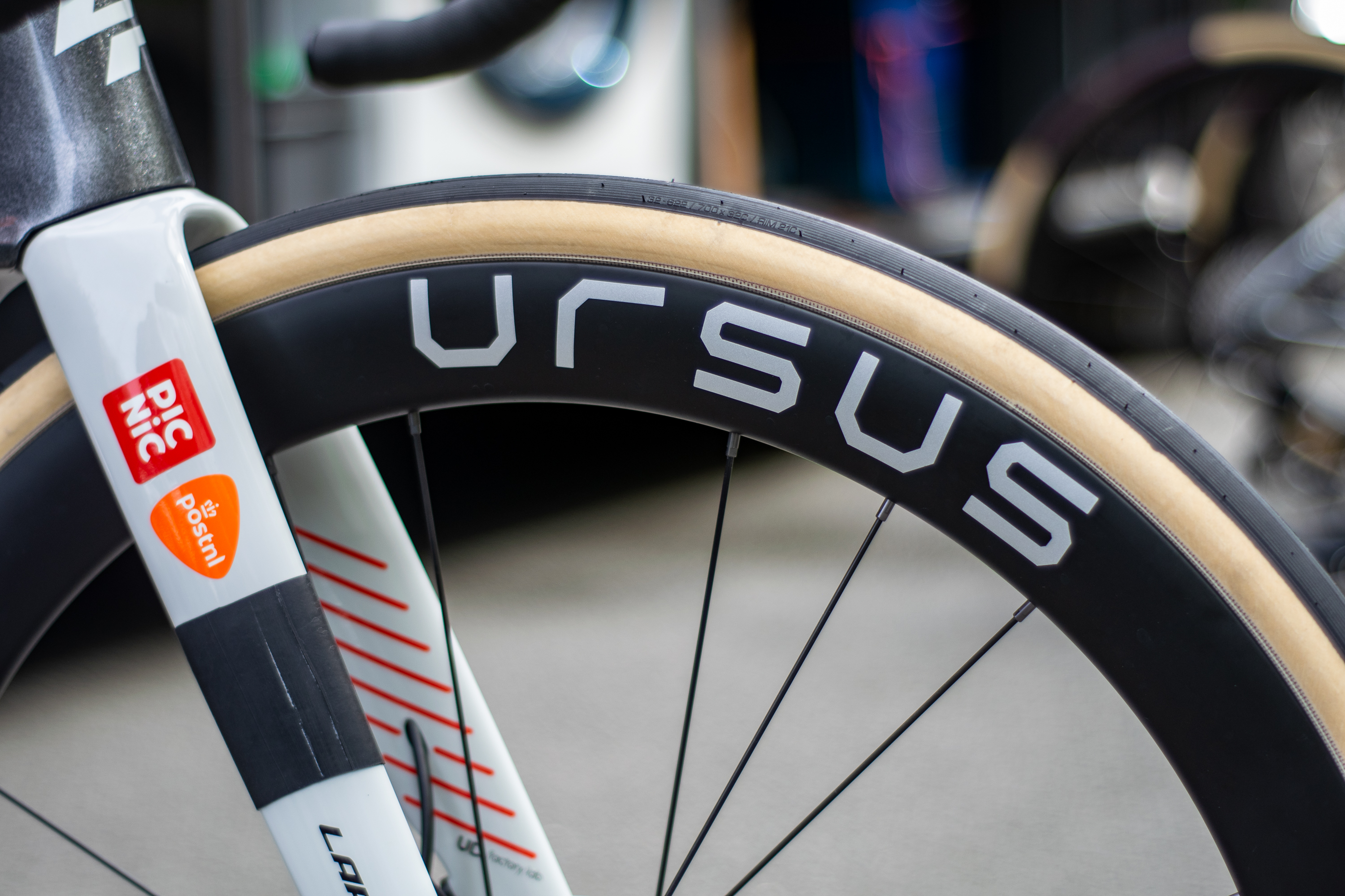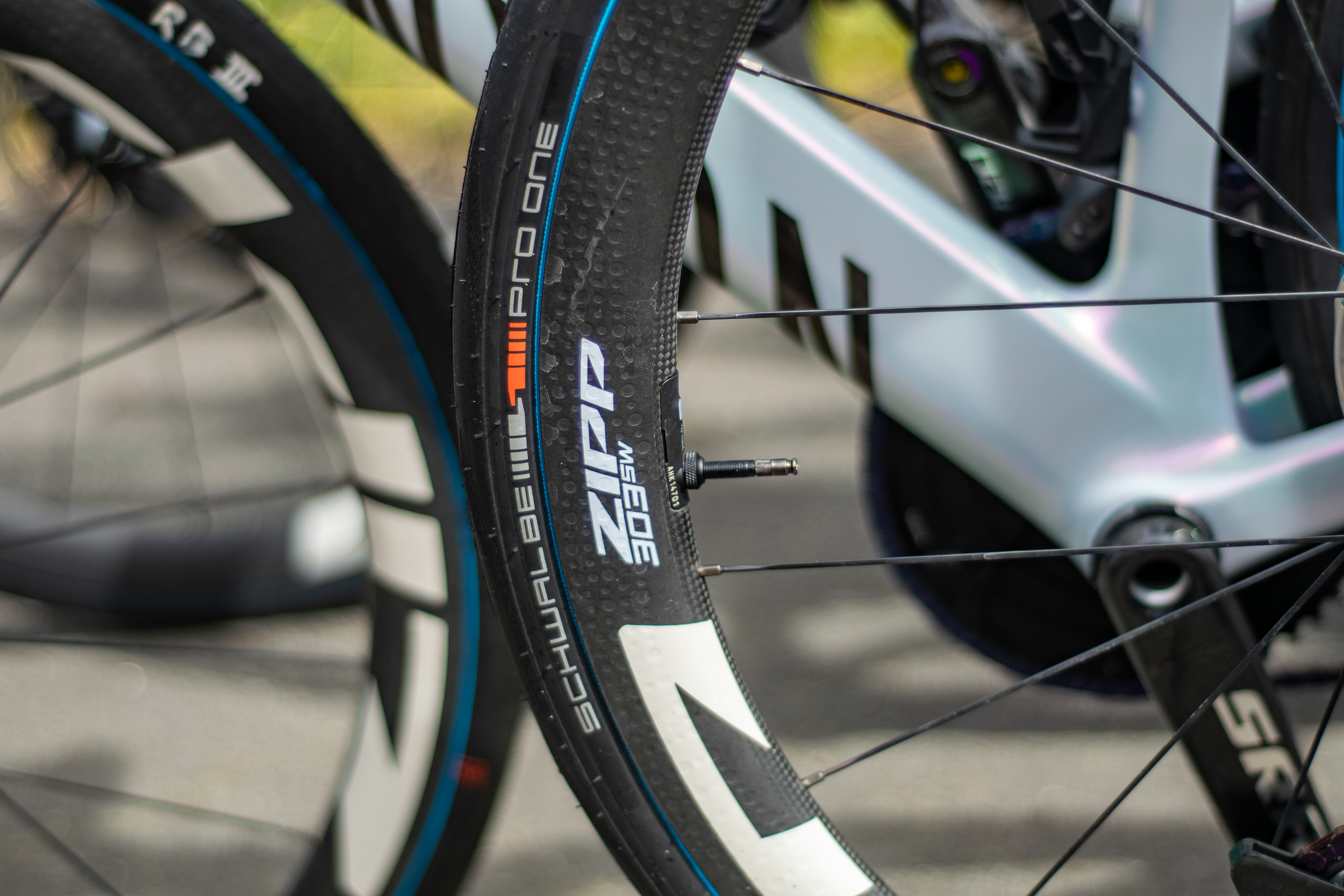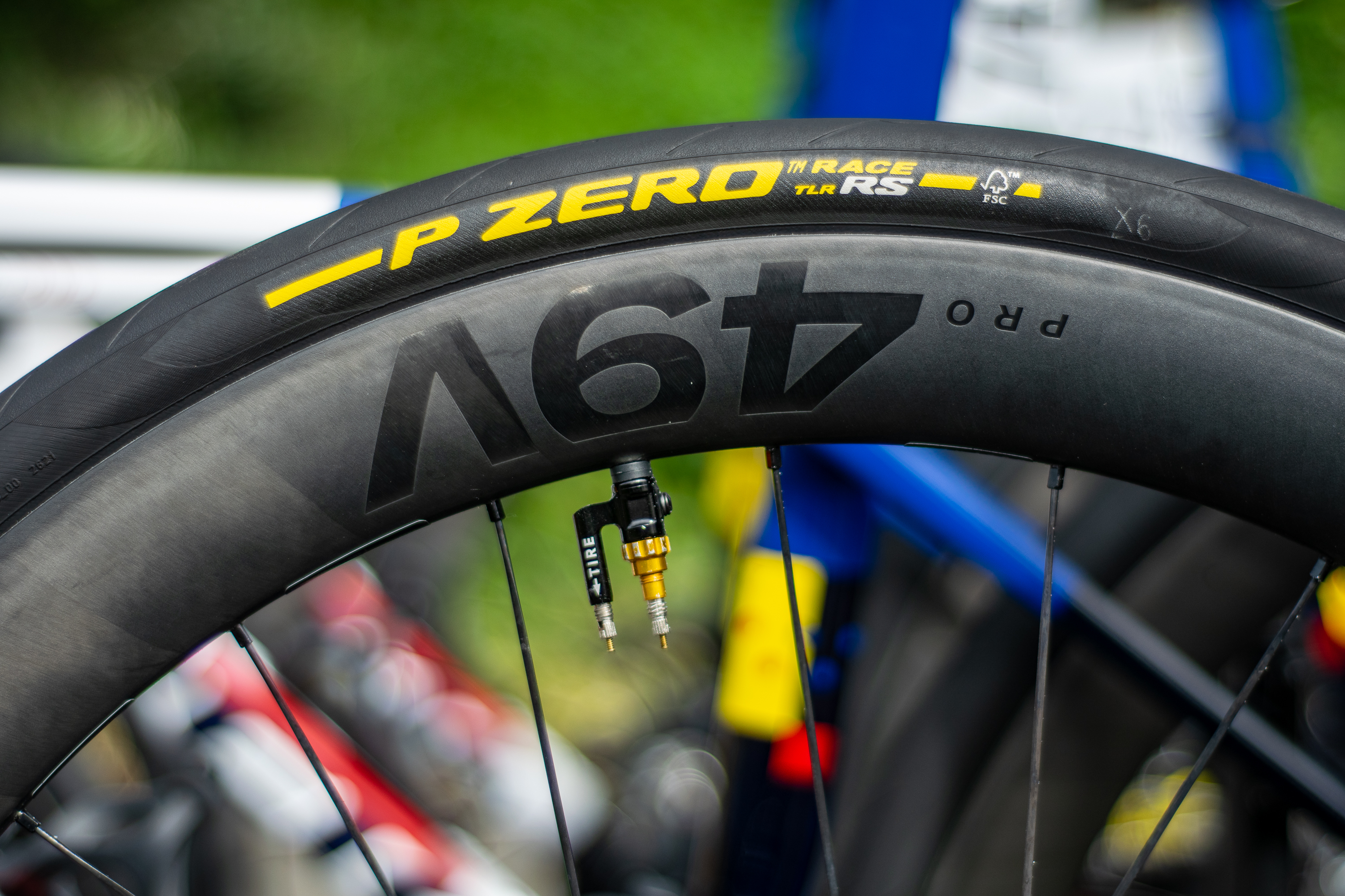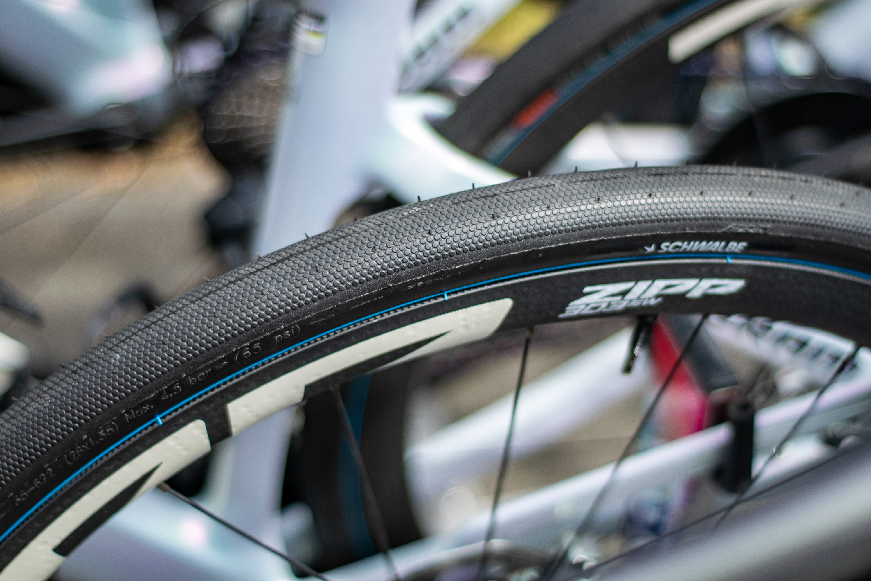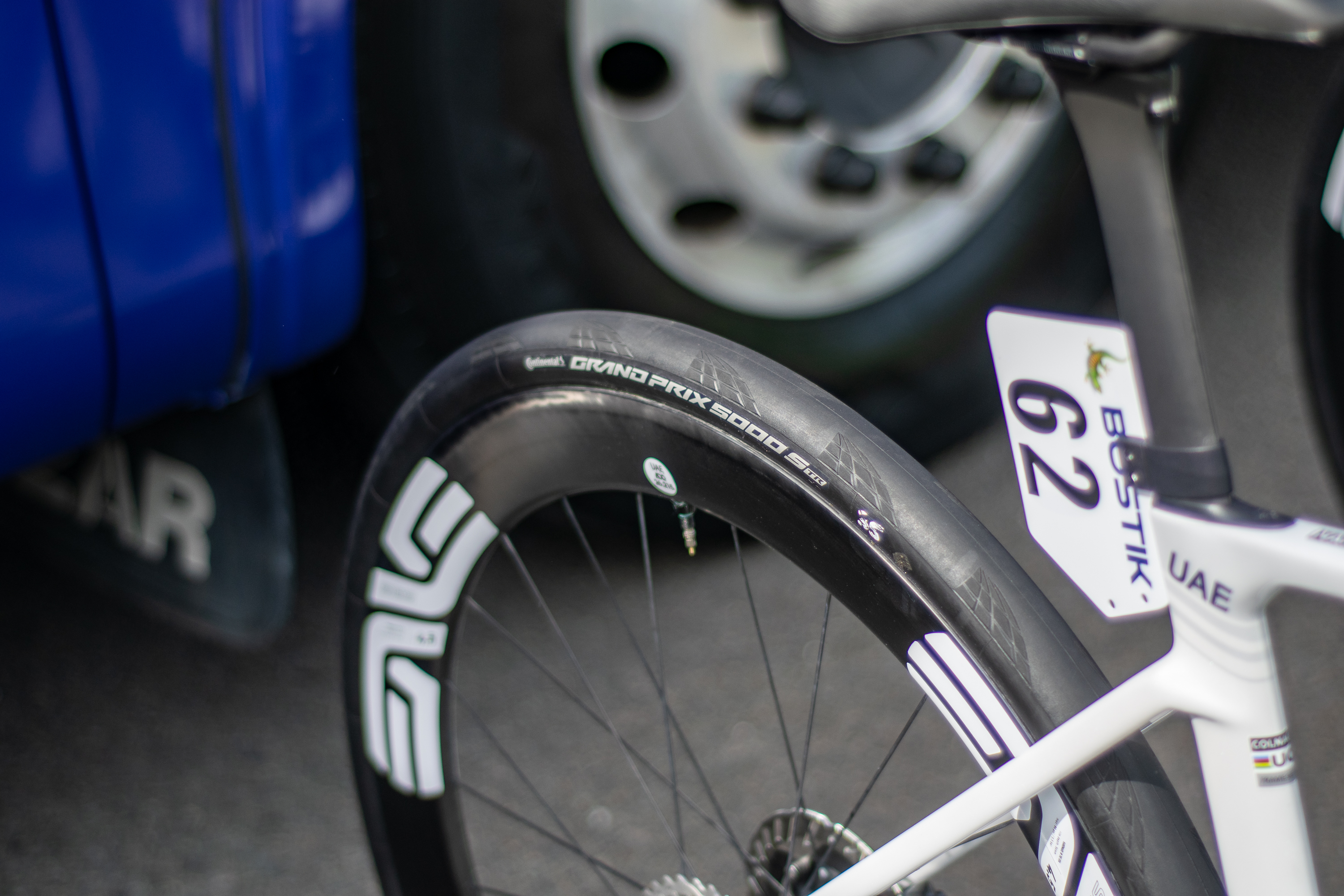 The team had fitted 30mm Vittoria Corsa Pros, a seemingly conservative choice.