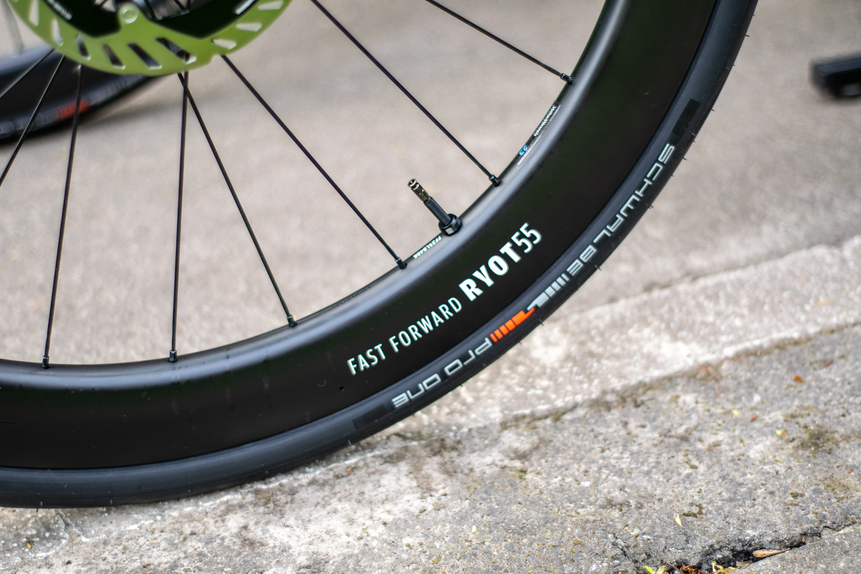 Fast Forward Ryot 55 wheels and Schwalbe Pro One tyres, spot the Clik Valve tubeless valves too.