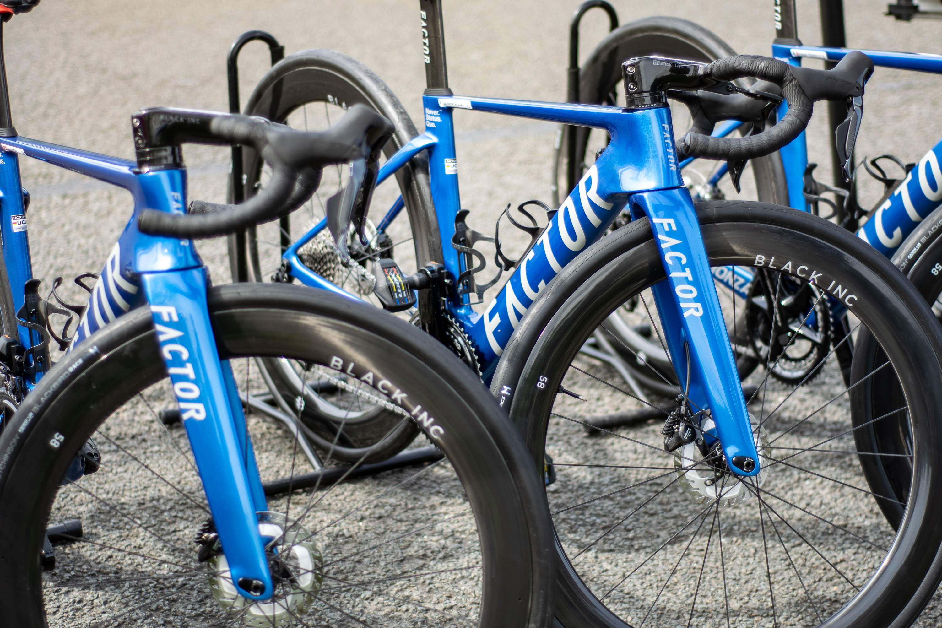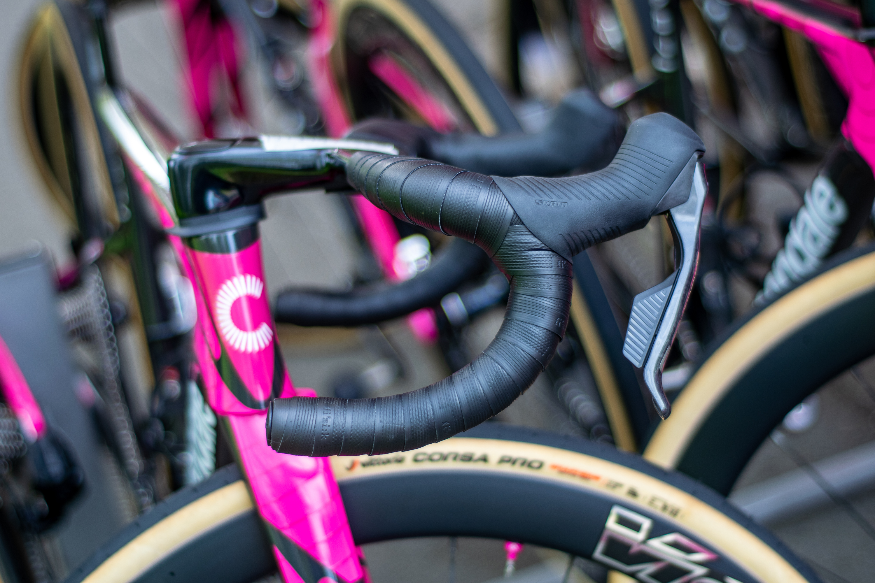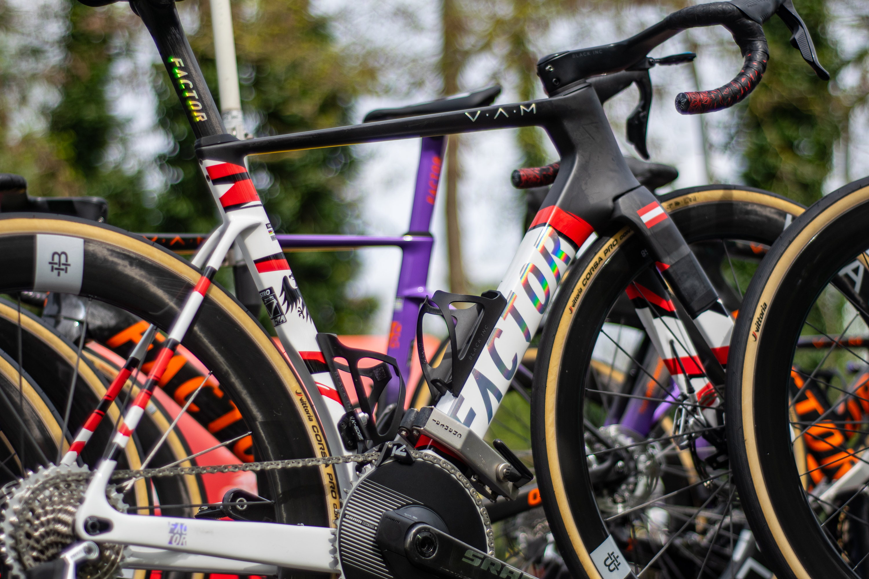 34mm Corsa Pro Control tyres were fitted to the team’s Factor Monzas; a wider tyre really helps on the cobblestones.