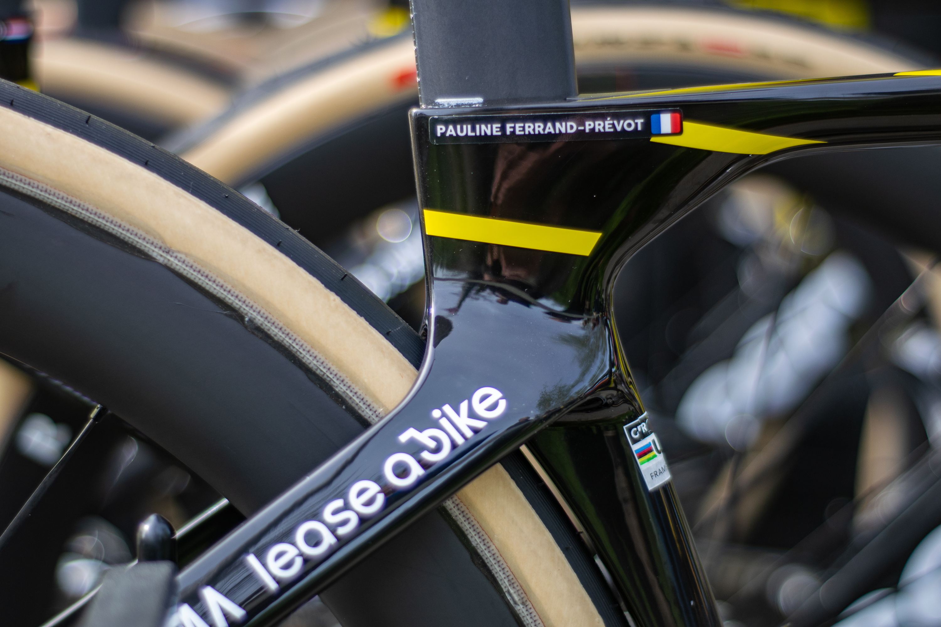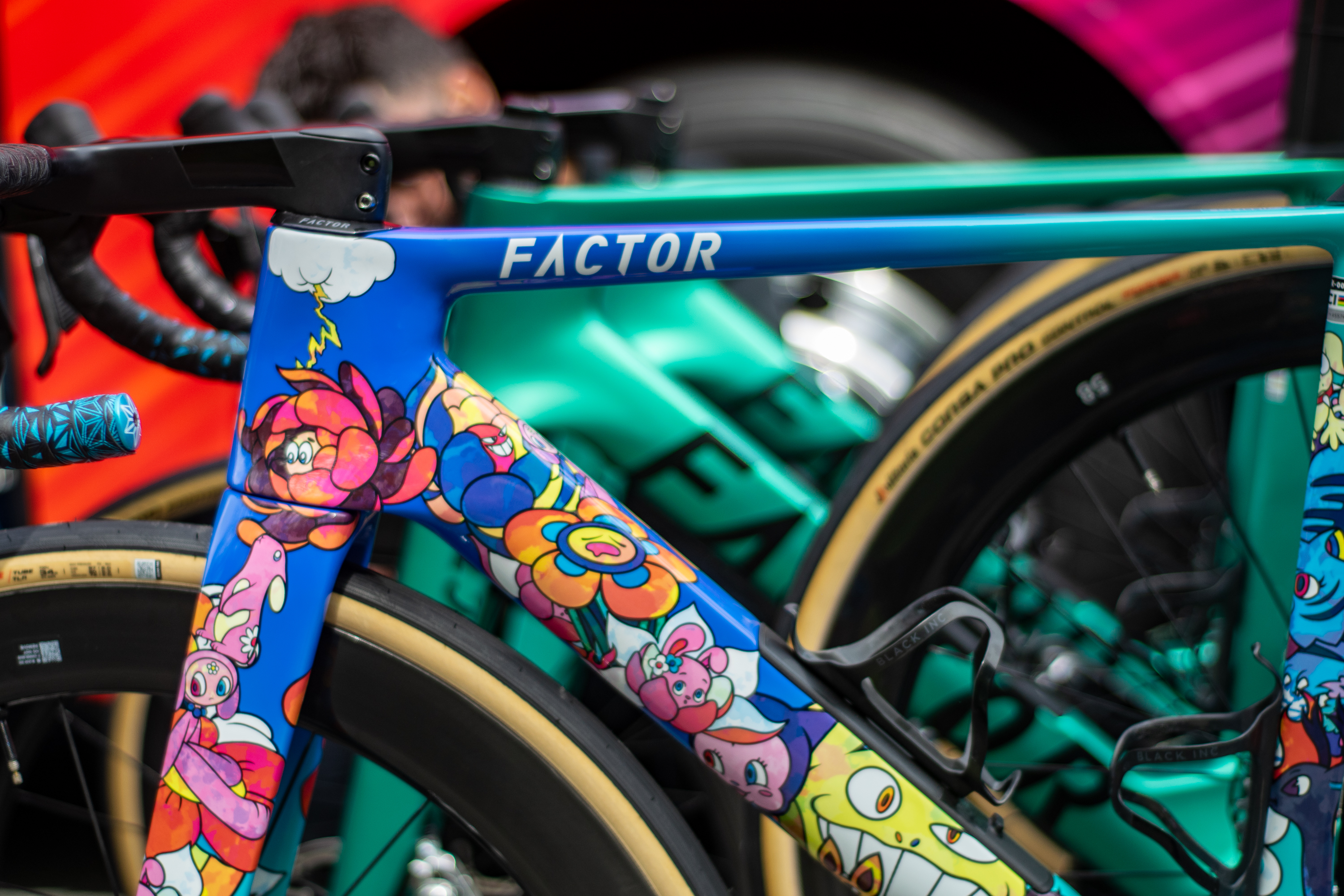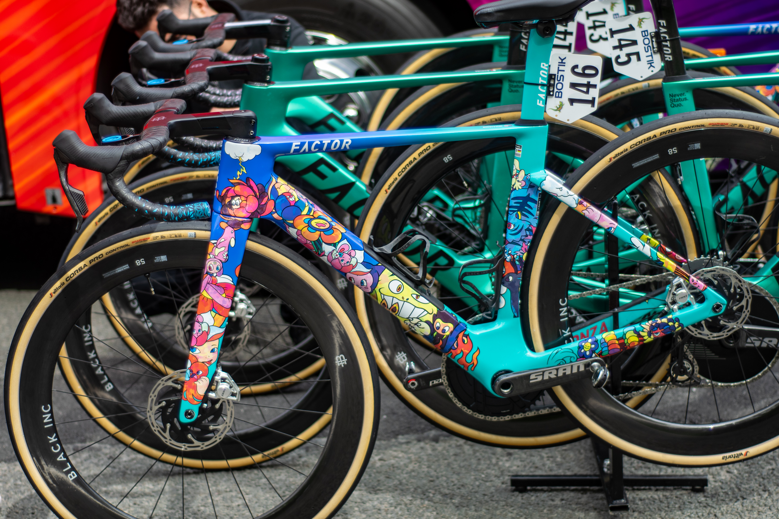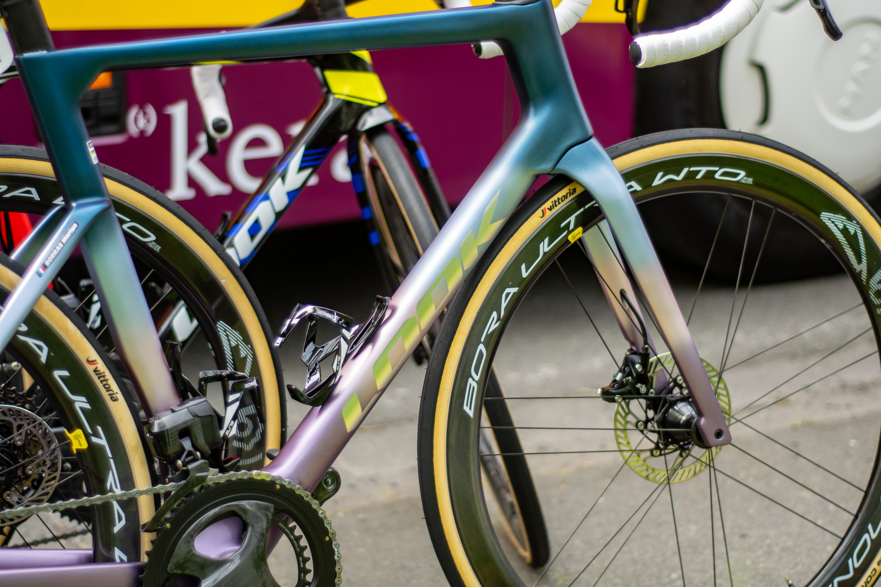 34mm Corsa Pro Control tyres were fitted to the team’s Factor Monzas; a wider tyre really helps on the cobblestones.