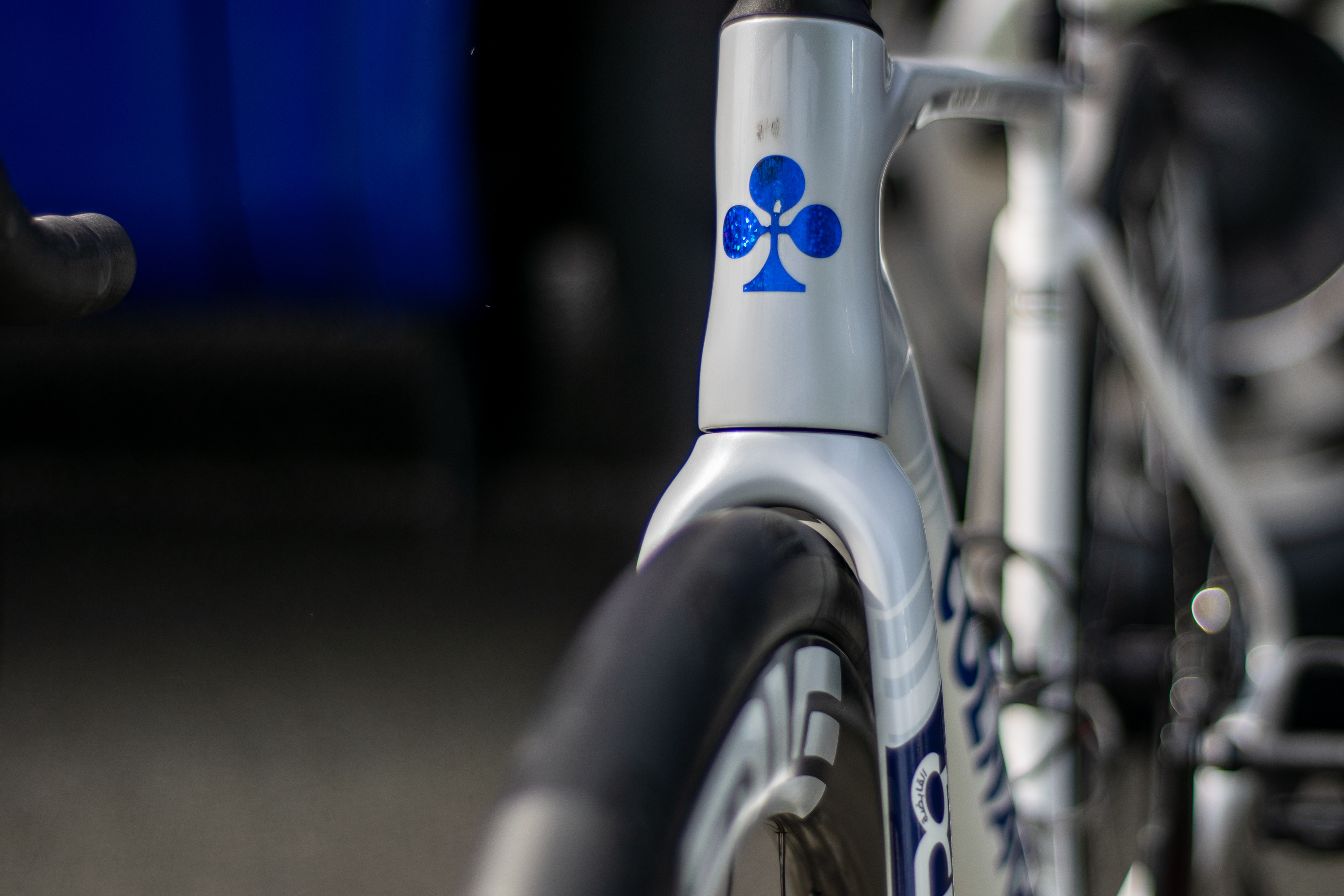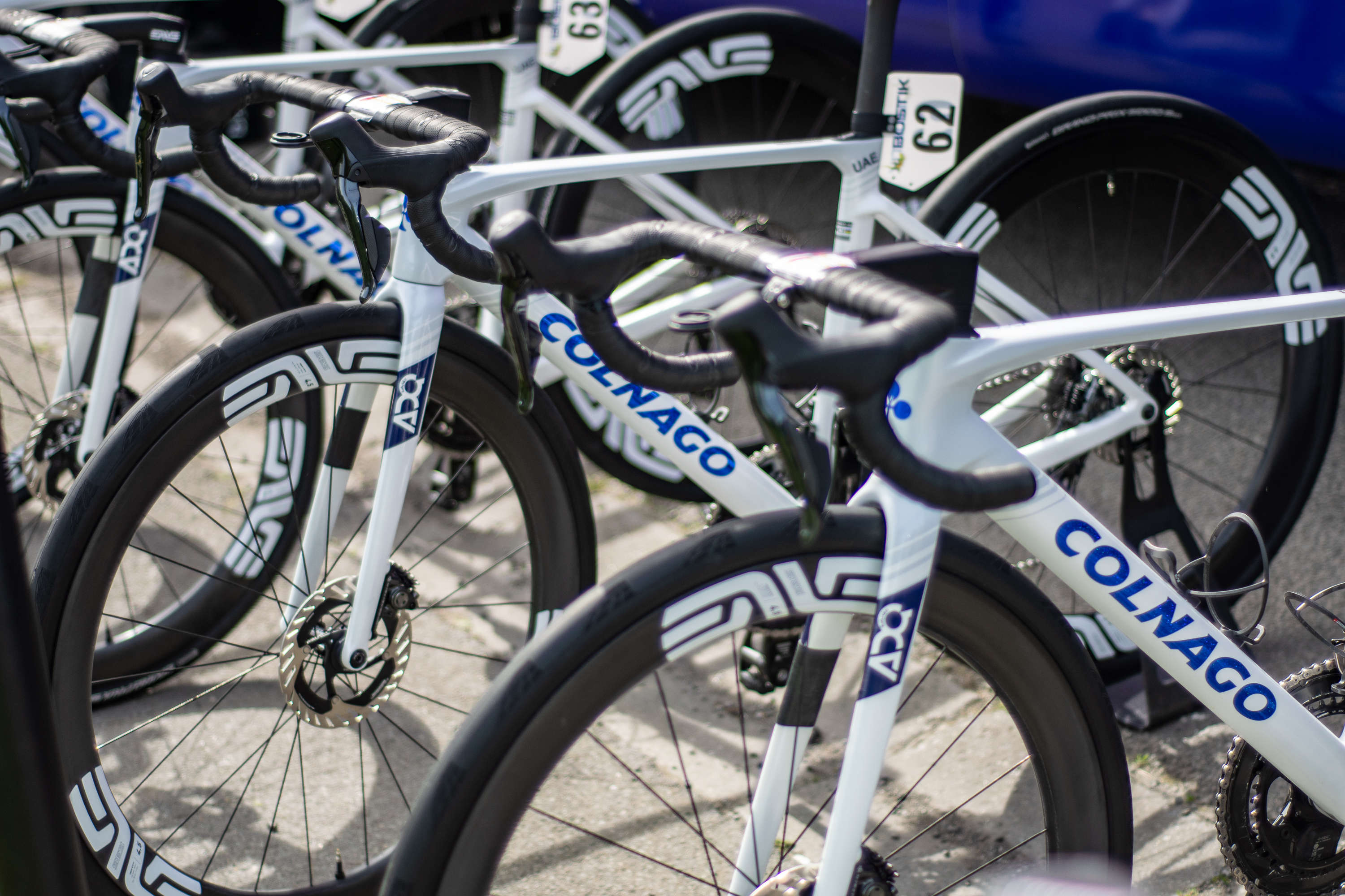 I started at Team UAE ADQ; they chose the Colnago V5RS, not the super-aero Y1RS that the men's team usually ride. I love that white-and-blue paint.