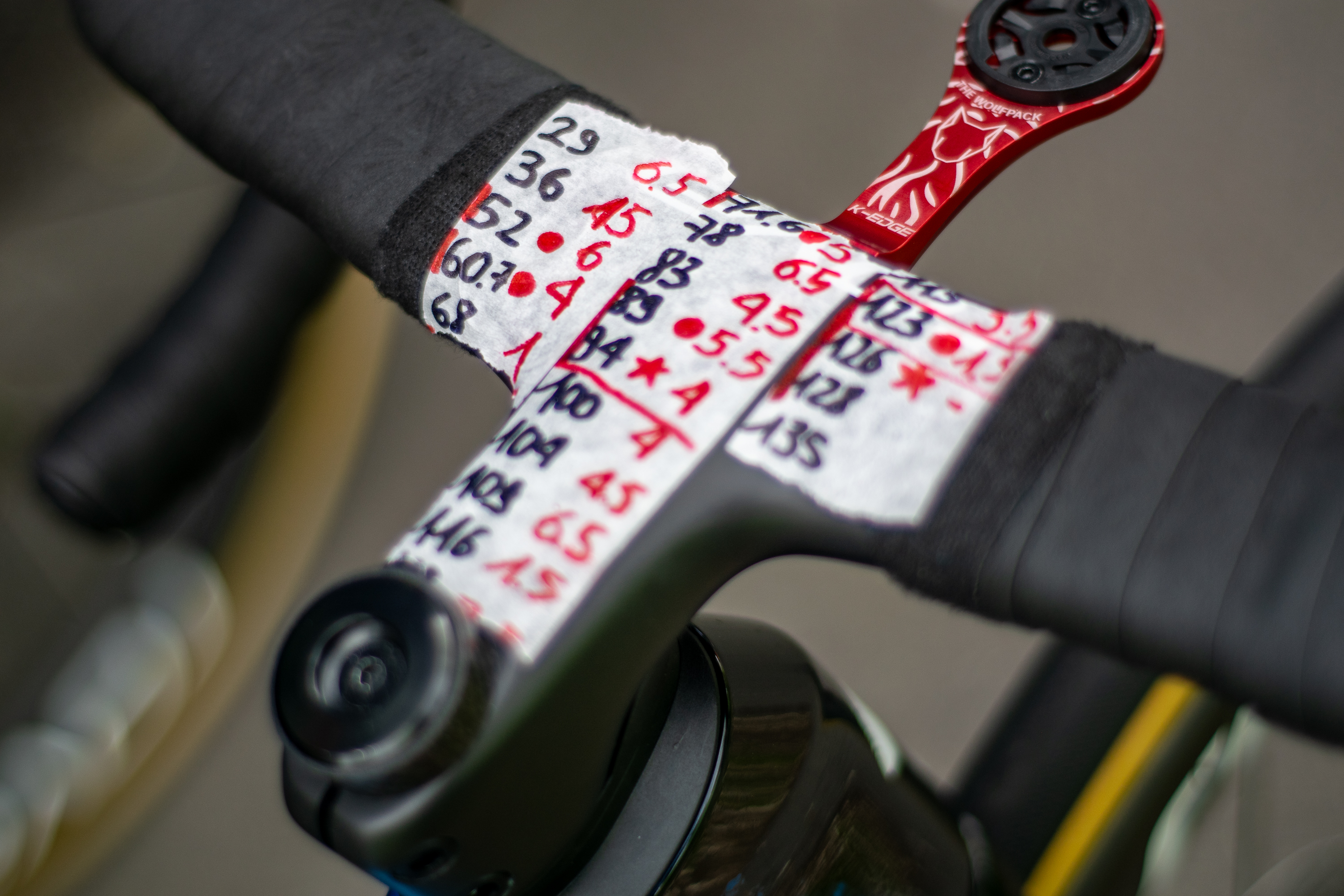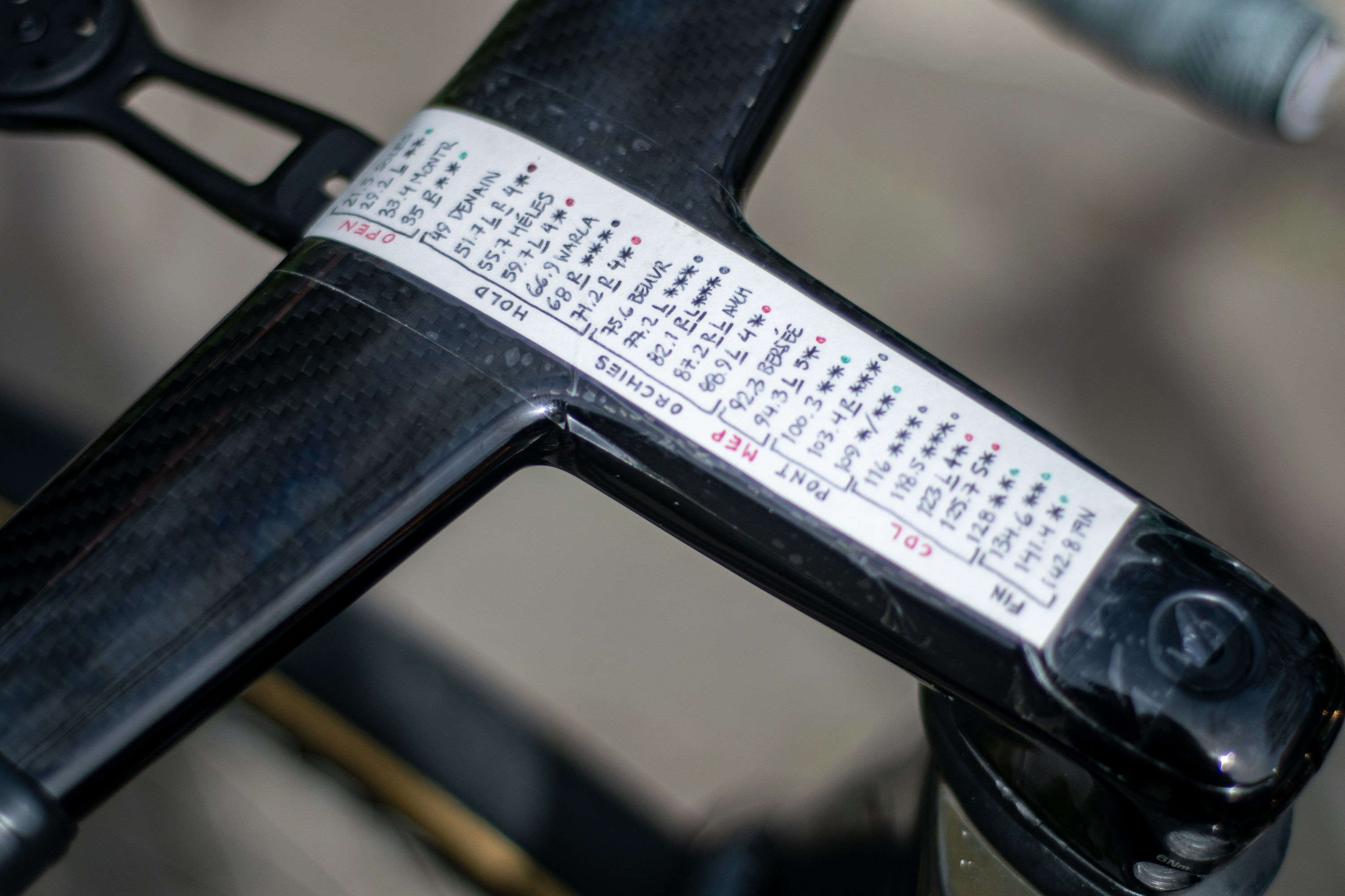 This bike also had more comprehensive stem notes, denoting which sectors were coming and at what point in the race.
