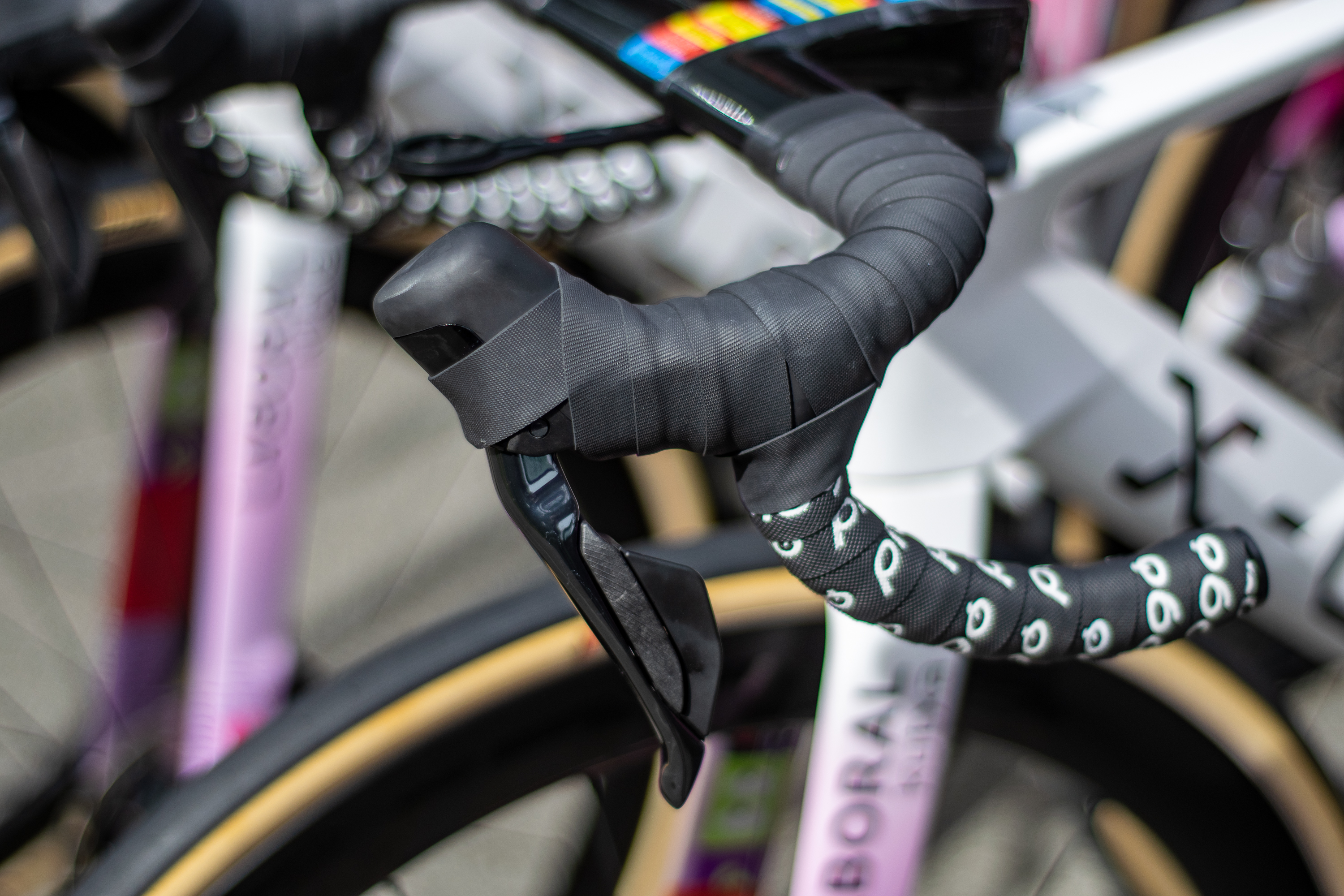 Several riders had fully taped their handlebar tops, providing a little more comfort as riders tend to hold the tops more at Roubaix.