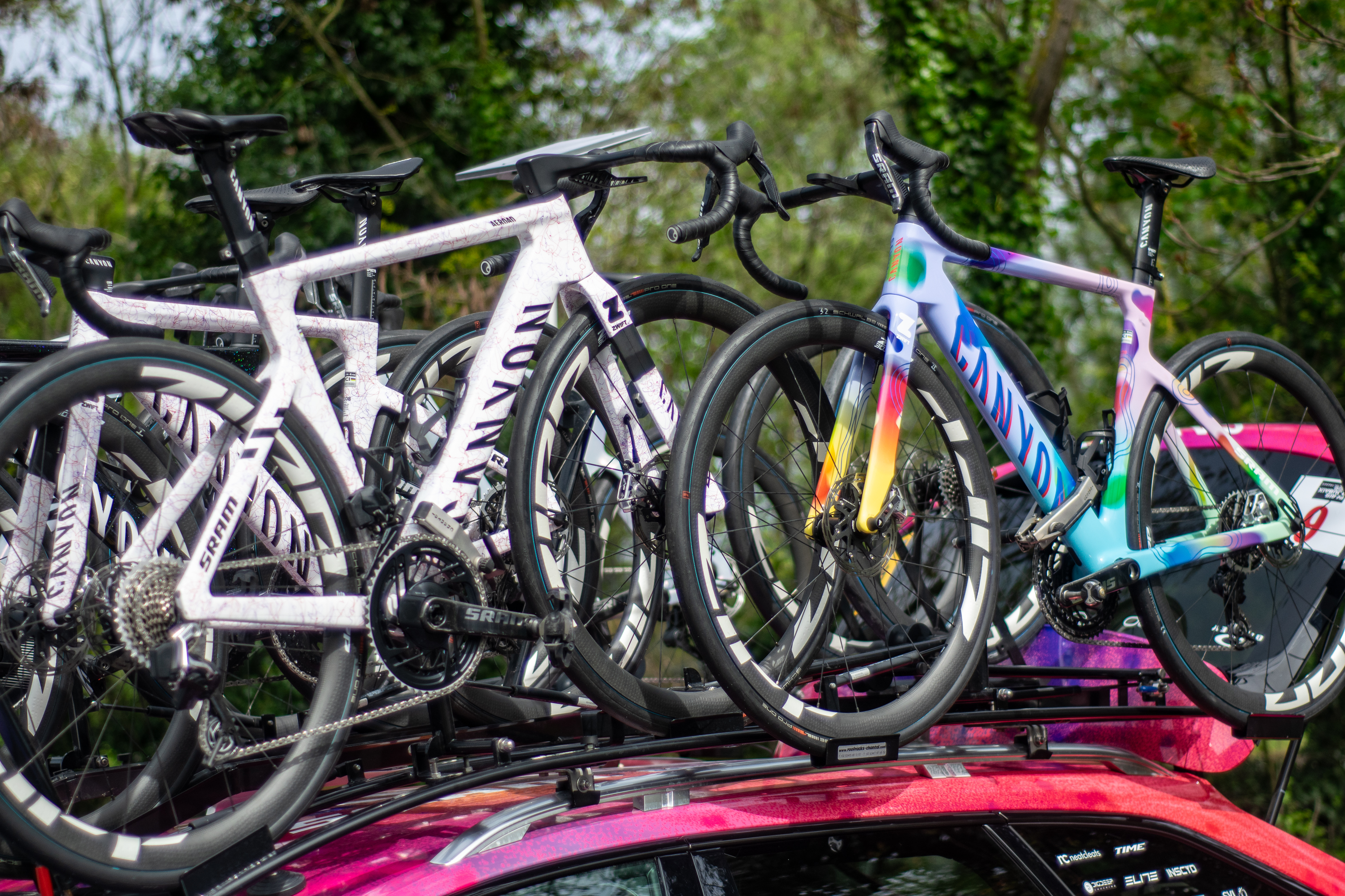 Two custom-painted Aeroads here on the team car roof, from the Canyon custom paint programme.