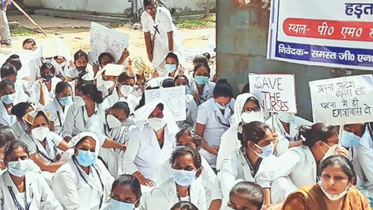 PATNA: All 180 nursing students of GNM Institute of Patna Medical College and Hospital (PMCH) were evicted from their hostels with the help of district administration on Friday.
