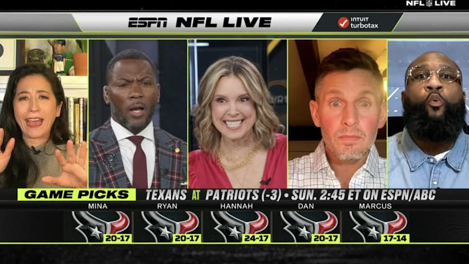Among New England’s doubters was the entire cast of ESPN’s NFL Live. When making their predictions ahead of Sunday’s divisional round clash, the five-person crew of analysts, consisting of Mina Kimes, Ryan Clark, Dan Orlovsky, Hannah Storm and Marcus Spears, unanimously forecasted a Houston victory.