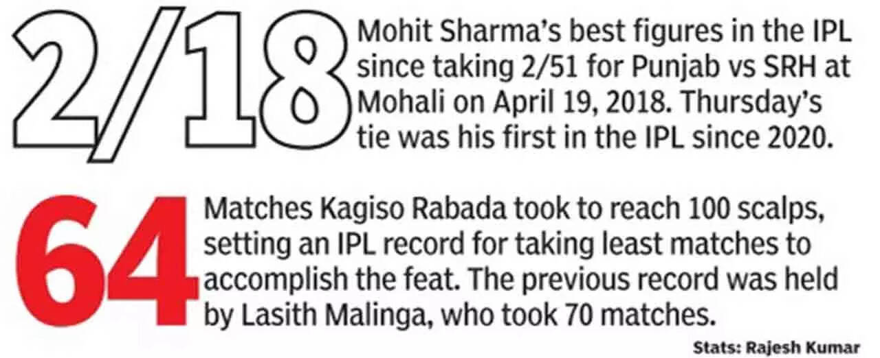 Meanwhile, Punjab' lead pacer Kagiso Rabada became the fastest to 100 wickets in the IPL, when he had Saha caught at deep square leg off a short ball.