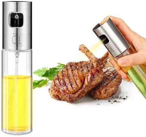 Get just the right amount of olive oil, vinegar, or citrus juice while you cook with this spray bottle. Made from durable glass and stainless steel, it's attractive enough for permanent counter display, and is a great way to cut down on one-use bottles.