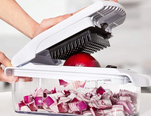 Make food prep faster and easier with this chopper that features four interchangeable, rust-proof, stainless steel blades that cut right through your fruits and vegetables. Julienne, chop, and slice with ease right into the spacious BPA-free container that holds more than a liter of food, which is enough space to make a full batch of salsa.