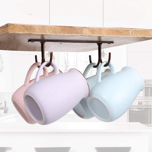 Enjoy extra storage for coffee mugs, oven mitts, cooking utensils, and lots more by mounting these hangers to the underside of your cabinets. Crafted from iron with an attractive matte black finish, they're corrosion-resistant and a cinch to install with the included hardware.