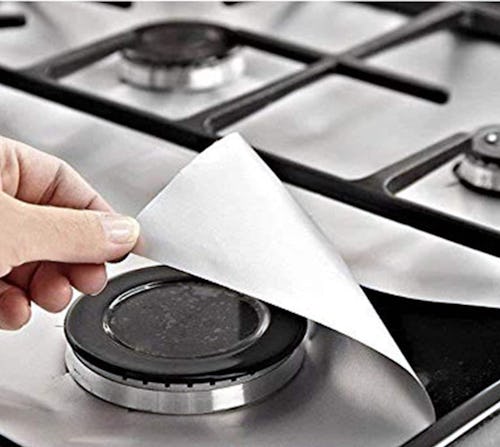 Protect your gas stove from spills and crumbs by placing these burner covers under the grates. Made from extra-thick, nonstick fiberglass, they have an attractive silver finish and can be trimmed to fit any size stove. When they're dirty, throw them in the dishwasher or wipe them down with a cloth.