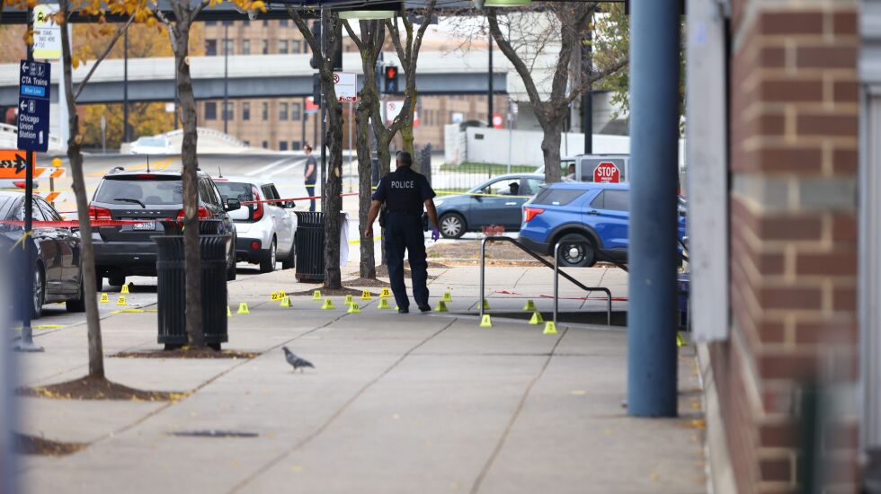 Duwon Gaddis, 30, was struck several times around 11:20 a.m. in front of the station in the 600 block of West Harrison Street, Deputy Chicago Police Chief Jill Stevens said in a news conference.