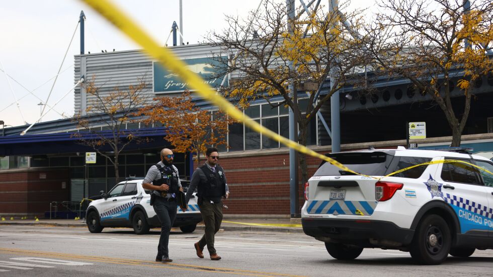 Police say a gunman walked up to a man getting out of his car at the Greyhound bus station on the Near West Side and, without saying a word, shot and killed him Monday morning.