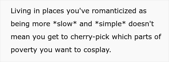 Sick of hyper-consumerism and being a slave to debt, this person went in search of a better life. One based on “slow, intentional living” and being “more connected to the earth.” But they say after the honeymoon phase wore off, a very rude awakening was waiting on the other side…