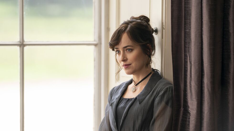 Sounding not quite British but definitely like an American actress doing a fairly good British accent, Dakota Johnson makes for an immensely charming and sympathetically flawed Anne, who has reached the shockingly advanced age of 27 without marrying. Anne blew her shot at happiness at 19, when she was, well, persuaded to dump the handsome and noble Frederick Wentworth (Cosmo Jarvis), who was a sailor without rank and thus deemed unworthy of Anne’s lasting affections.