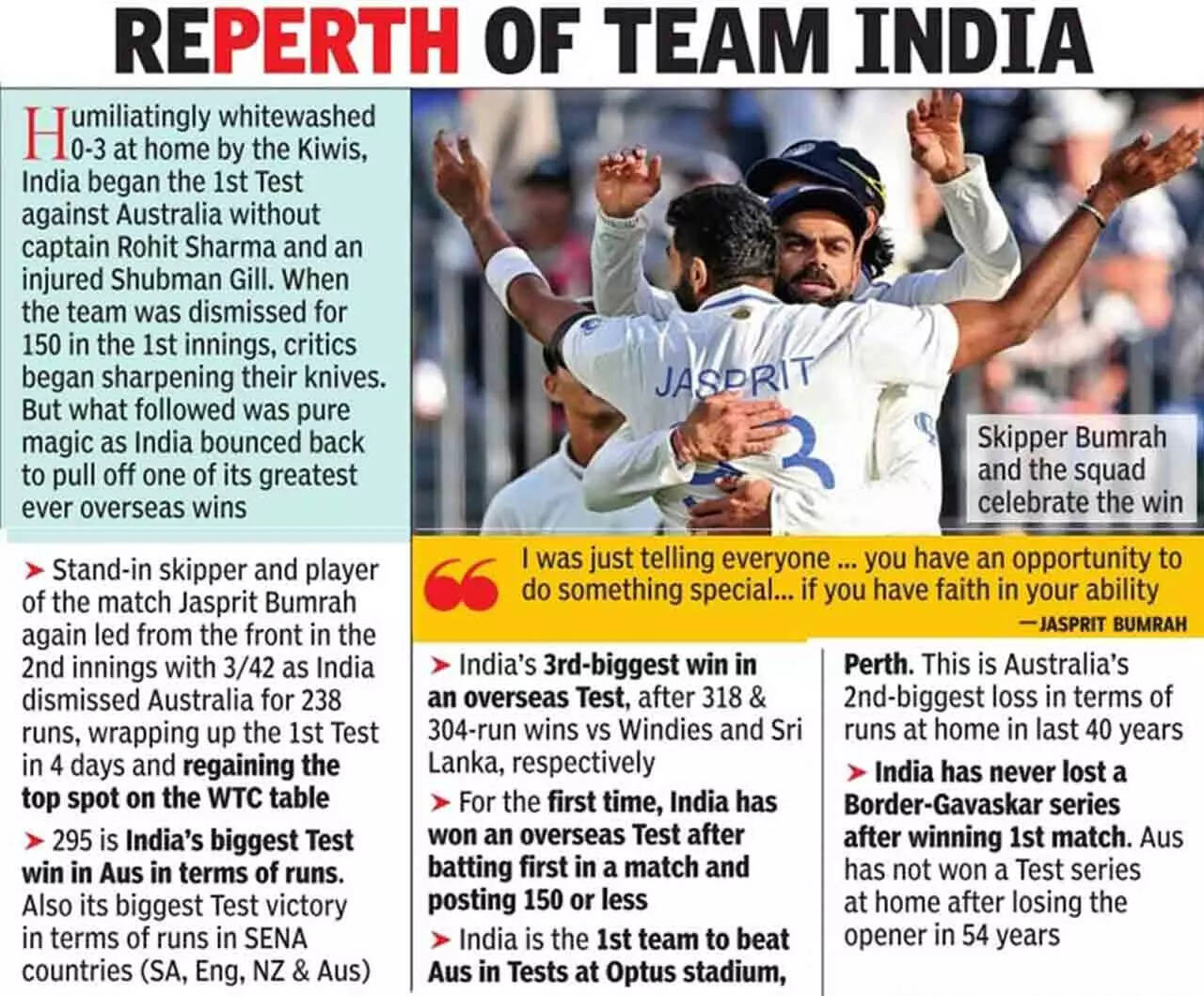 NEW DELHI: 'Perth-etic Humiliation' and 'Monster Loss' were the titles used by the Australian media on Monday to describe up their team's 295-run thumping to India in the first Test match.