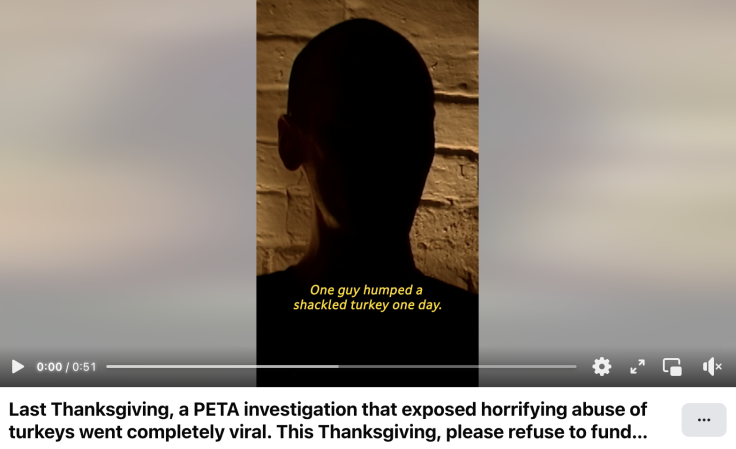 The video highlights that Plainville Farms was certified as 'Animal Welfare Certified' at the time of the abuse, raising serious concerns about industry oversight. PETA's Facebook caption urges viewers to 'refuse to fund such suffering and skip the turkey' this holiday season.