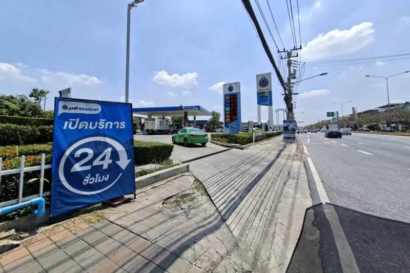 A sign promises around-the-clock sales at the entrance to a PTT petrol station late last month. (Photo: Pattarapong Chatpattarasill)