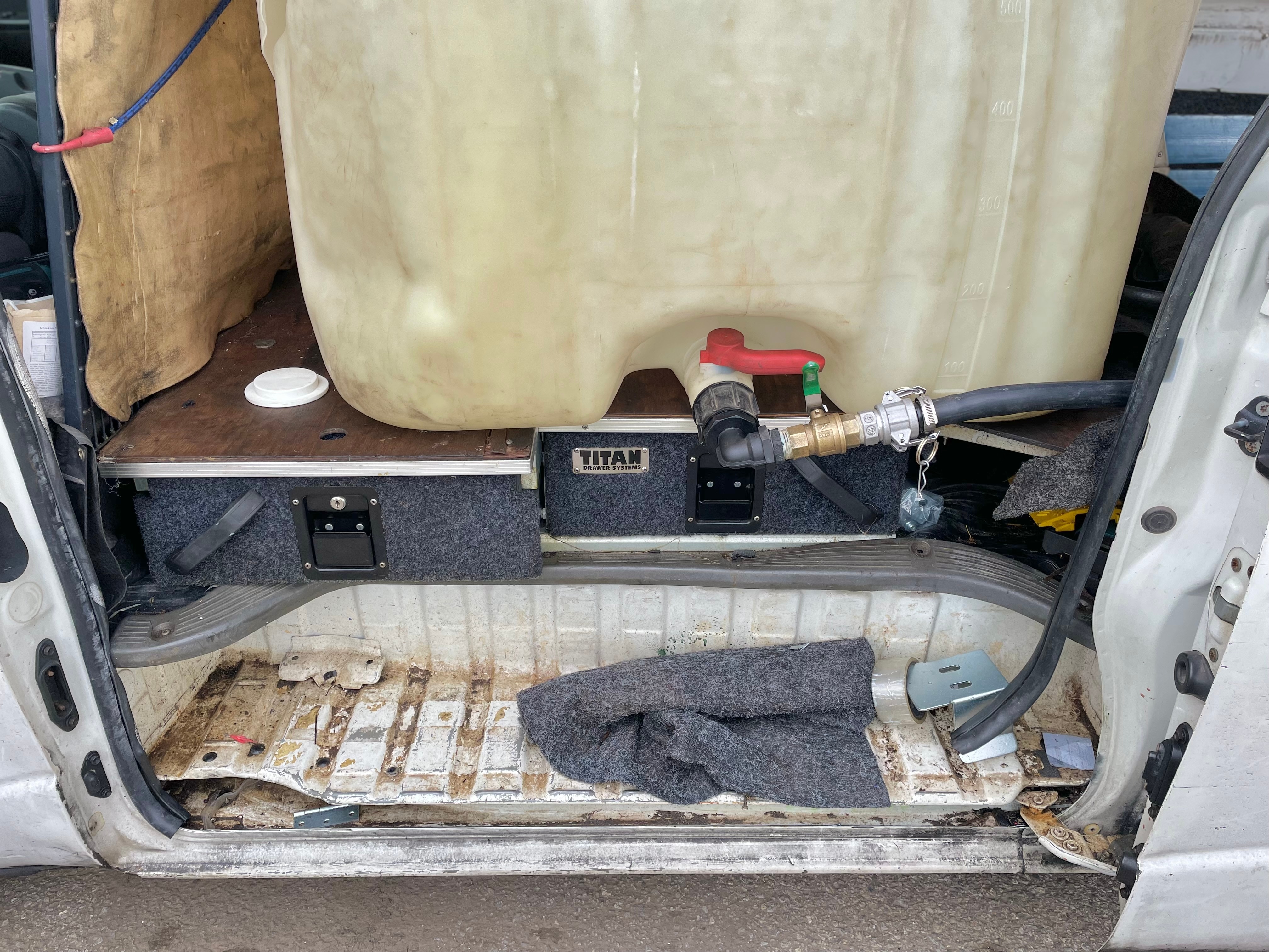 The tank allegedly contained 420 litres of fuel at the time and was fitted with a bowser, hose and pump "to distribute the stolen fuel", police said.
