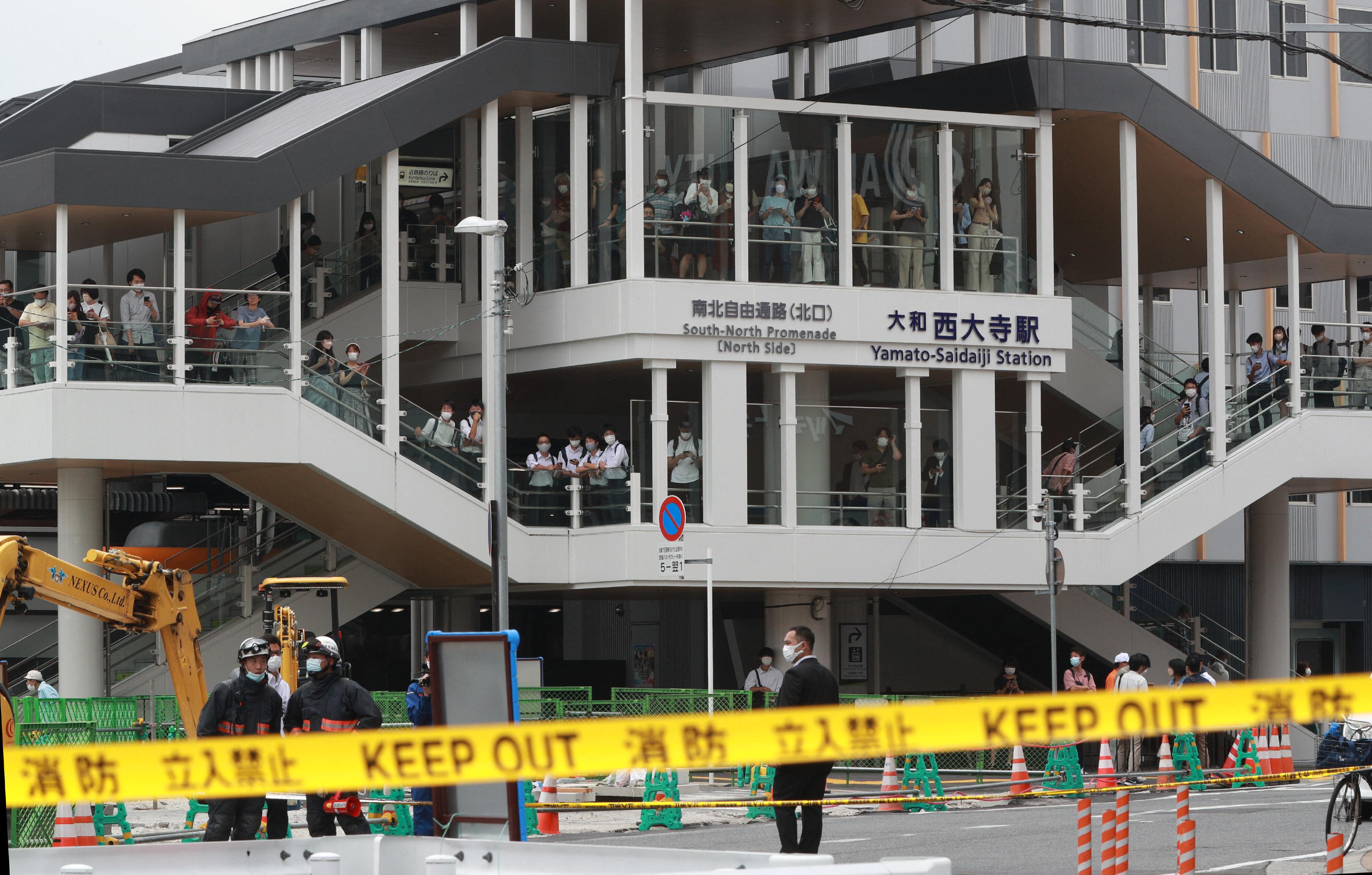 Photos have captured the dramatic moments after former Japanese prime minister Shinzo Abe was assassinated in Nara on Friday morning and the outpouring of grief that followed.