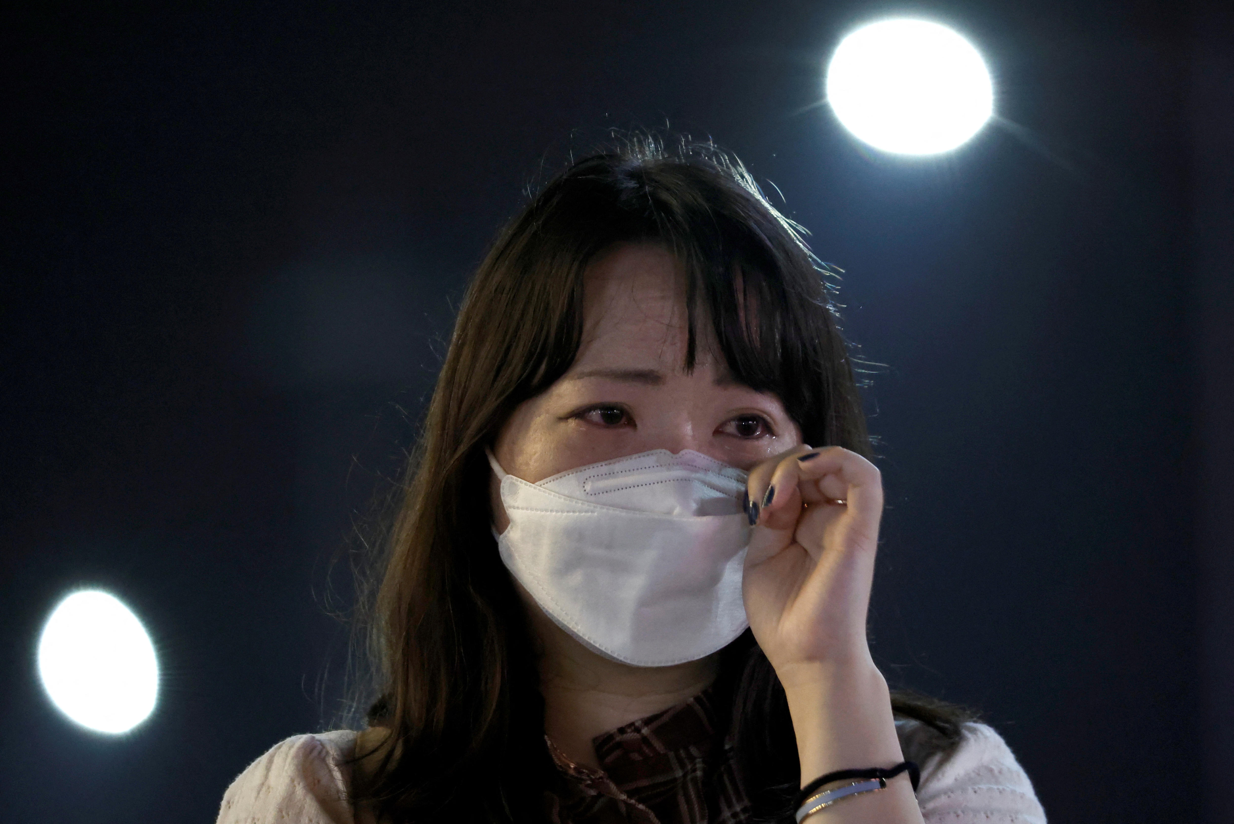 Akie Abe arrived at Nara Medical University Hospital shortly before her husband was pronounced dead. (AFP: Philip Fong)