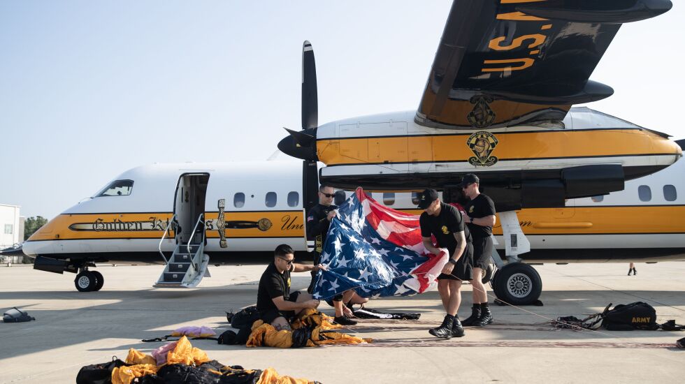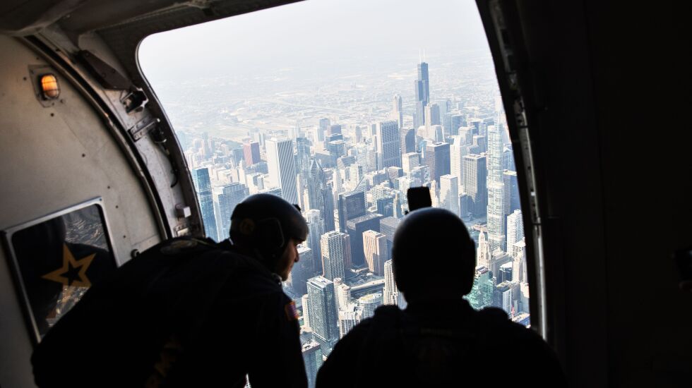 The U.S. Army also invited a Sun-Times photographer to join the Golden Knights for their warmup run Friday. Check out photos from the Air and Water Show rehearsals below.