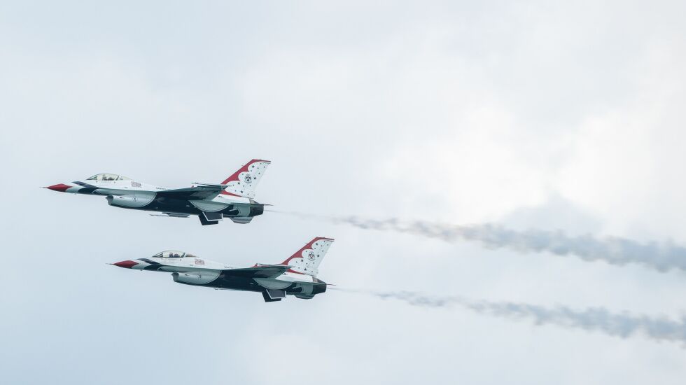 The skies of Chicago were filled with the sights and sometimes very loud sounds of the U.S. military Thursday and Friday as preparations move ahead for the 2023 Air and Water Show this weekend.