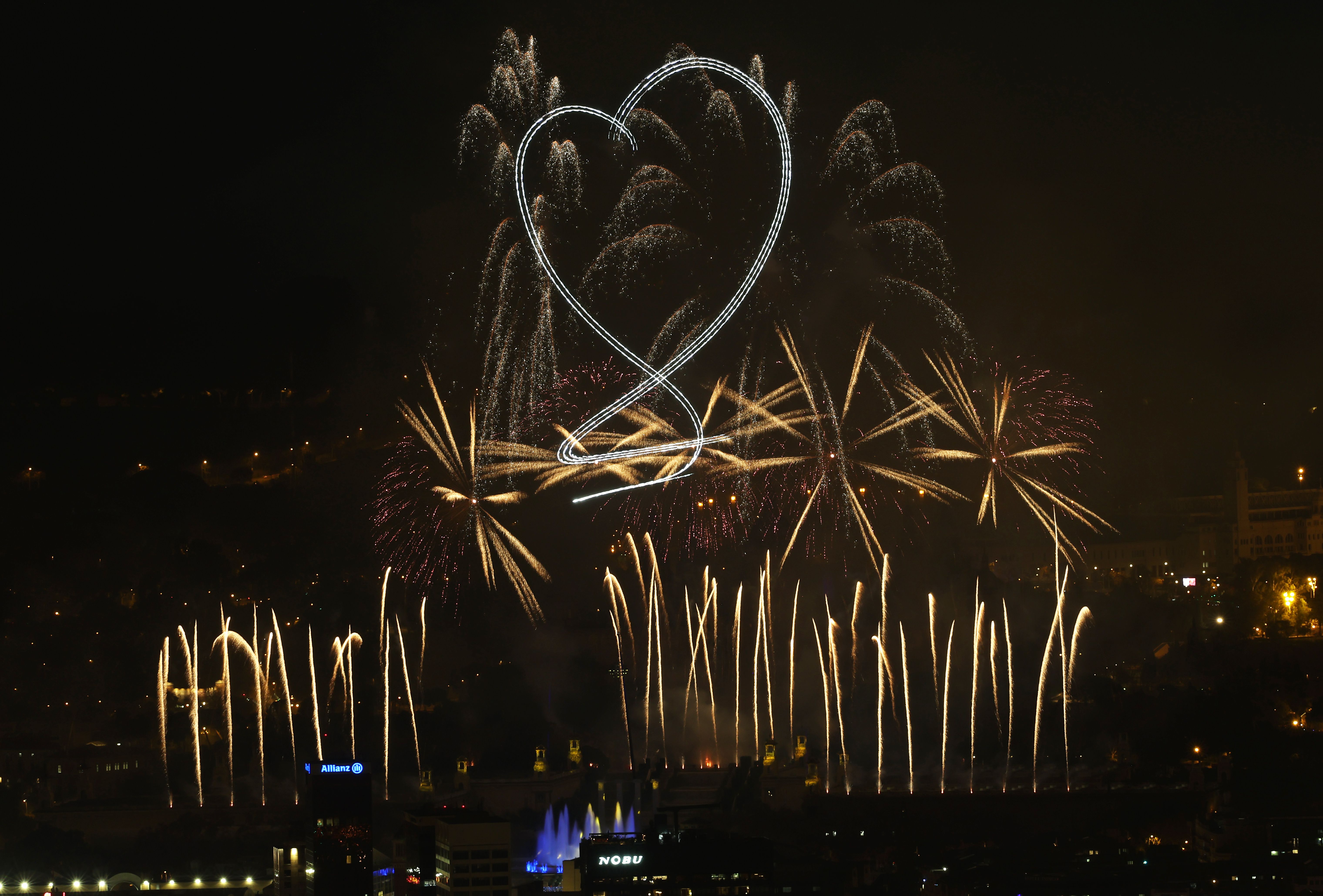 Pyrotechnics, drones and music are the central elements of the show to welcome the year 2026 in Barcelona, Spain, on Jan. 1. Photo: Joan Valls/Urbanandsport/NurPhoto via Getty Images