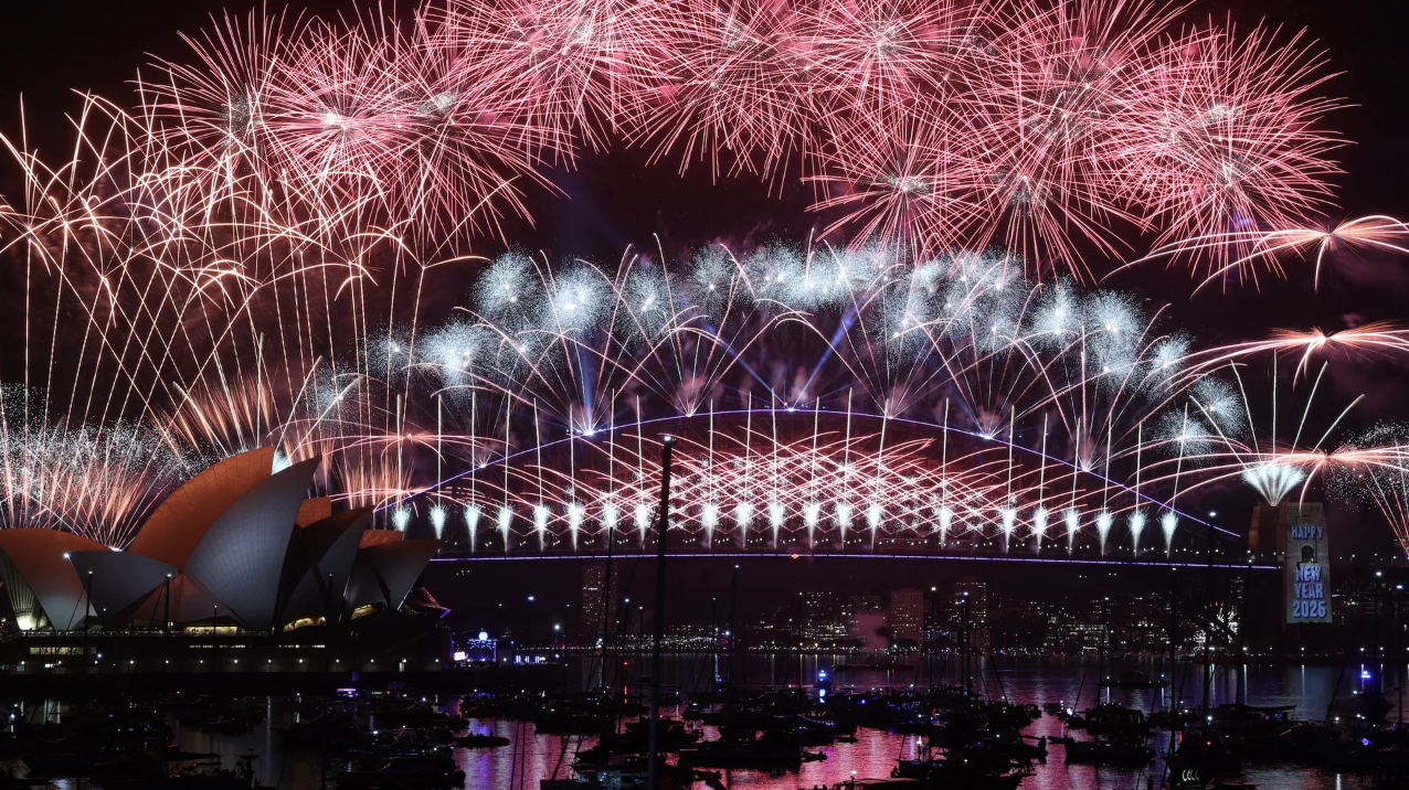 Fireworks light up the sky over Australia's Sydney Harbor Bridge and the Sydney Opera House during New Year's celebrations on Jan. 1. Photo: Izhar Khan/Getty Images