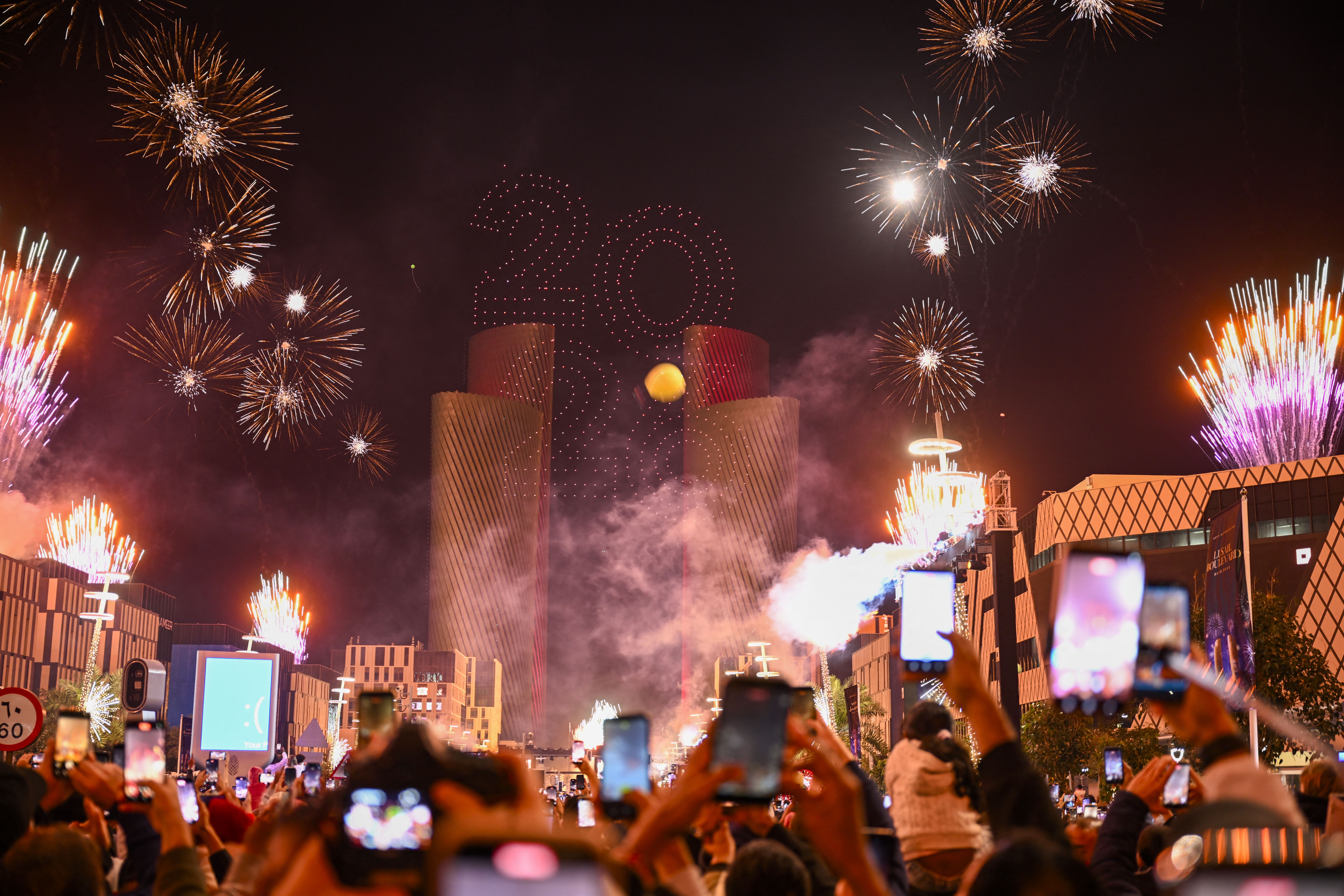 A fireworks display during New Year celebrations in Lusail, Qatar, early on Jan. 1. Photo: Mahmud Hams/AFP via Getty Images