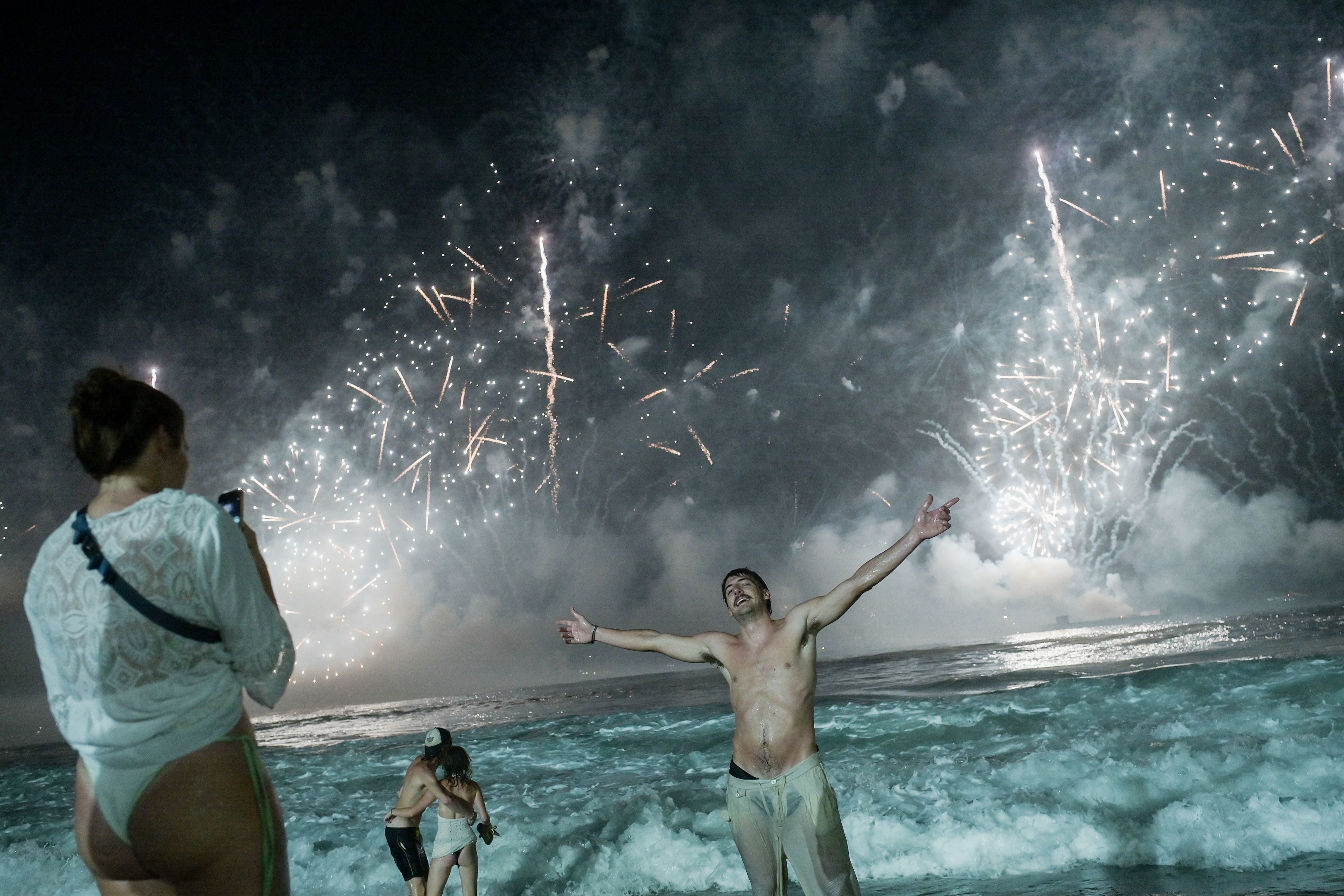 The traditional New Year's fireworks at Copacabana Beach in Rio de Janeiro, Brazil, on Jan. 1. Rio received the title of the world's largest New Year's Eve celebration from the Guinness World Records two days earlier. Photo: Tercio Teixeira/AFP via Getty Images
