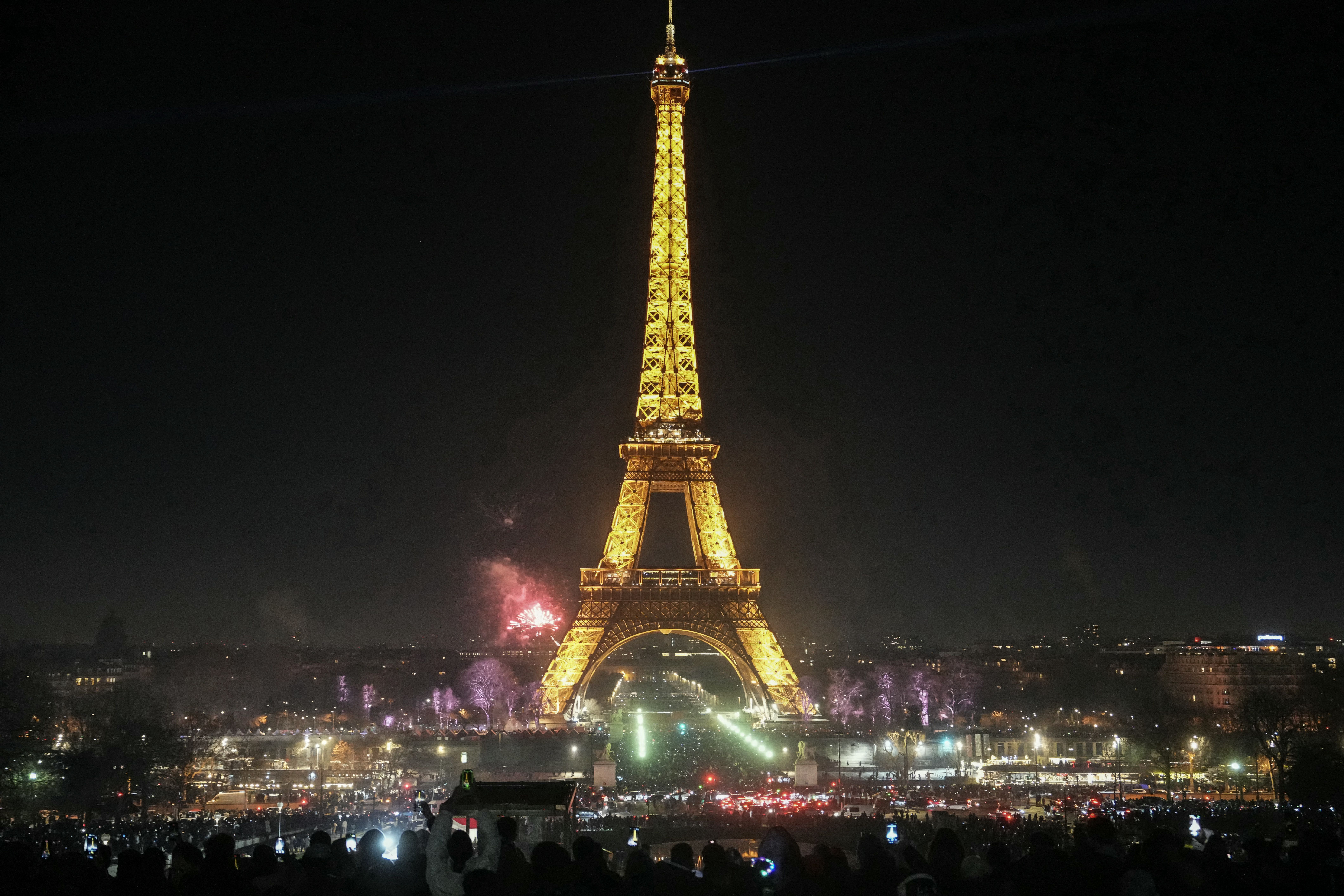 New Year's fireworks near the Eiffel Tower in Paris, France, on Dec. 31. Photo: Dimitar Dilkoff/AFP via Getty Images
