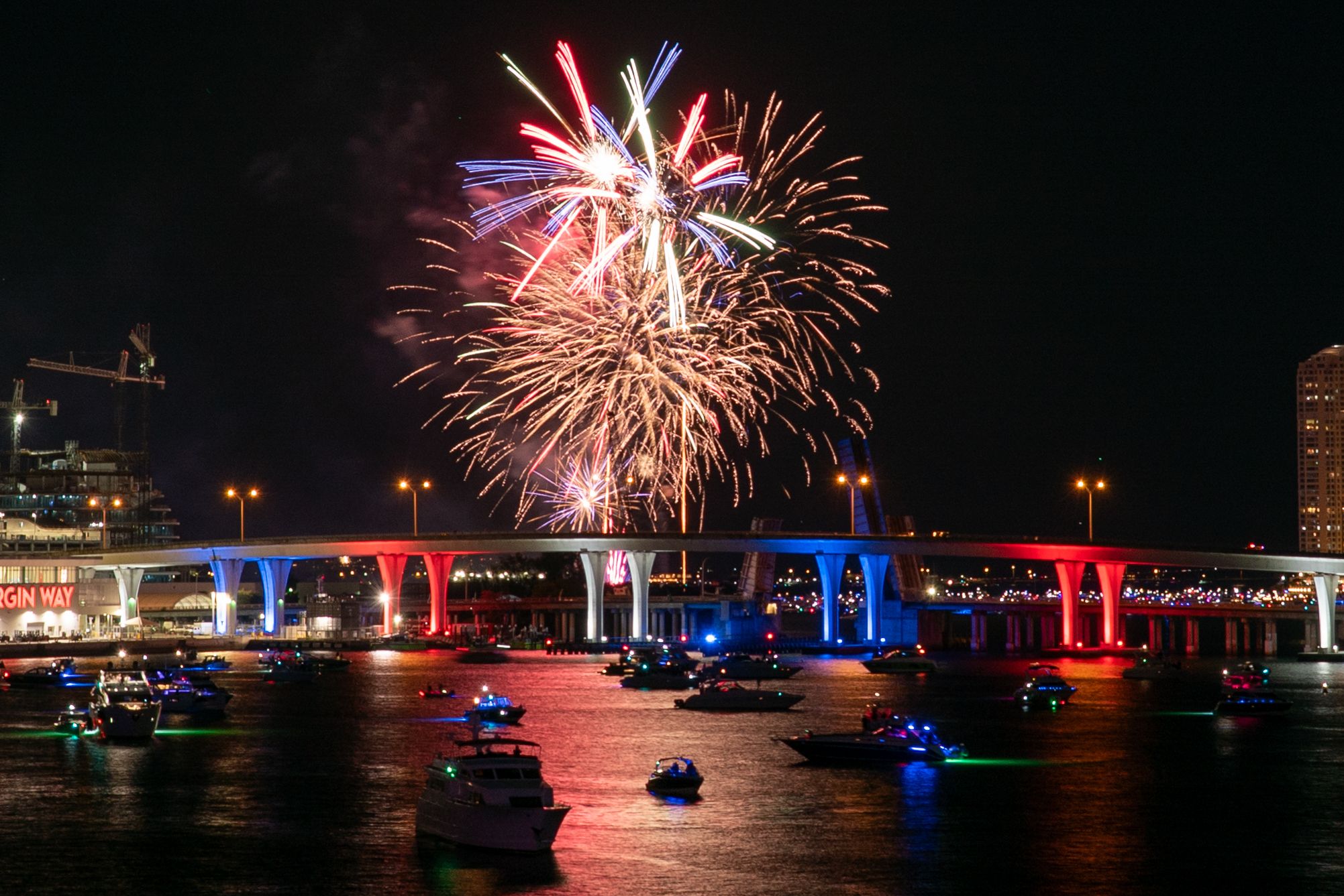 The scene at downtown Miami, Florida, across Biscayne Bay from a bridge connecting Miami and Miami Beach ahead of Miami-Dade County's New Year's celebrations on Jan. 1. Photo: Jesus Olarte/Anadolu via Getty Images